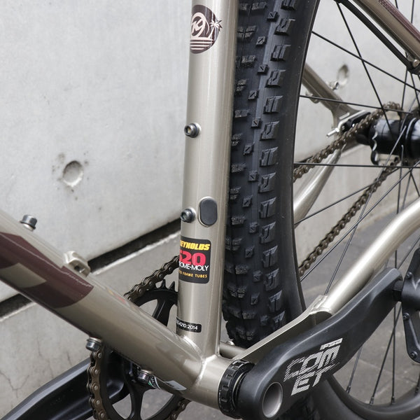 「BIKE PACKING BIKE」らしくボルト台座を豊富に配備に加え、内装ドロッパーシートポスト取り付けも可能。シフター・ディレーラー・スプロケット・チェーンのみのカスタムで多段仕様もOKと自由度が高い◎
