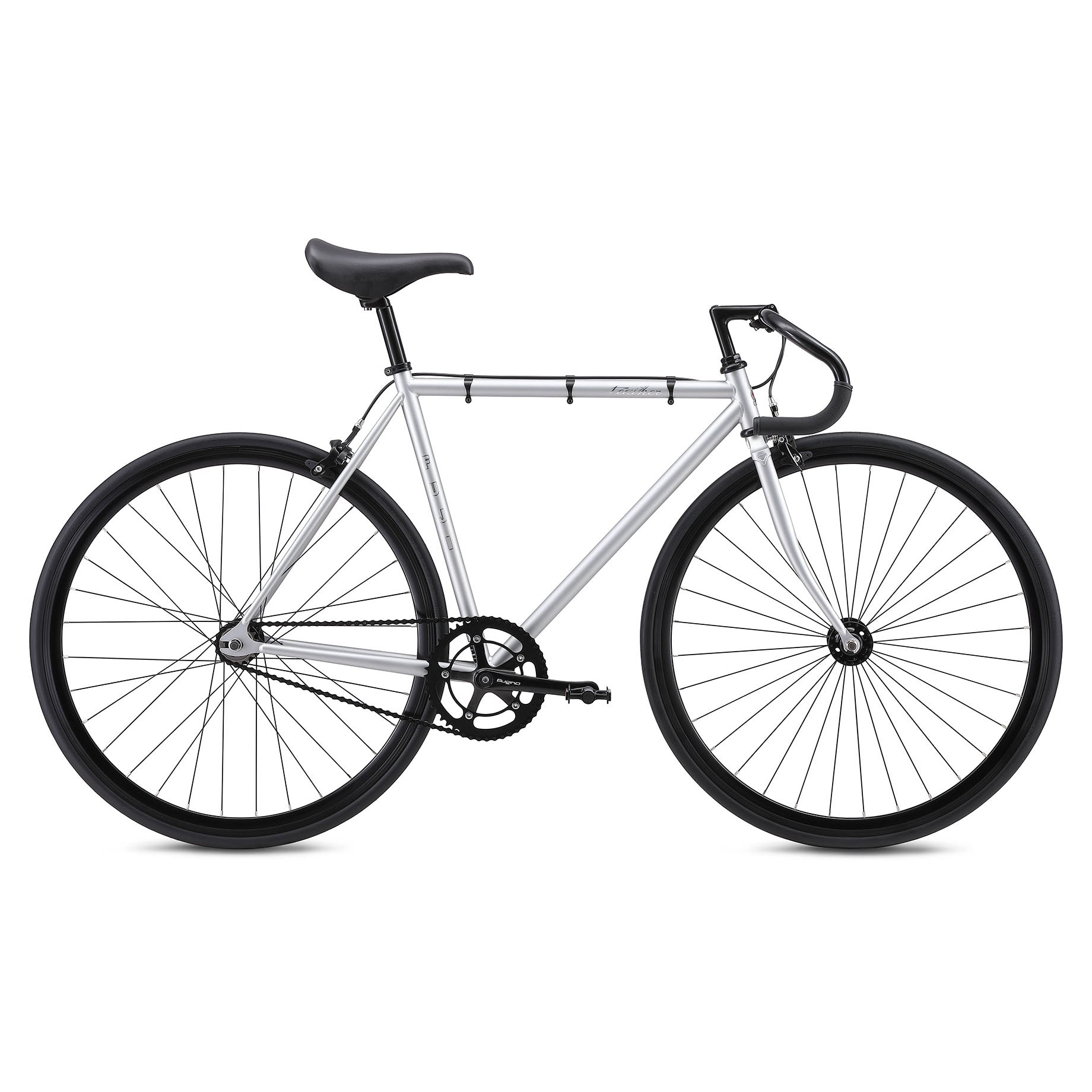 FUJI(フジ)の代表作「FEATHER(フェザー)」は、シングルスピードカルチャーを象徴する存在。極限まで無駄を削ぎ落としたホリゾンタルクロモリフレームに、SUGINO製クランクを組み合わせ、洗練された美しさと軽快な走行感を両立しています。