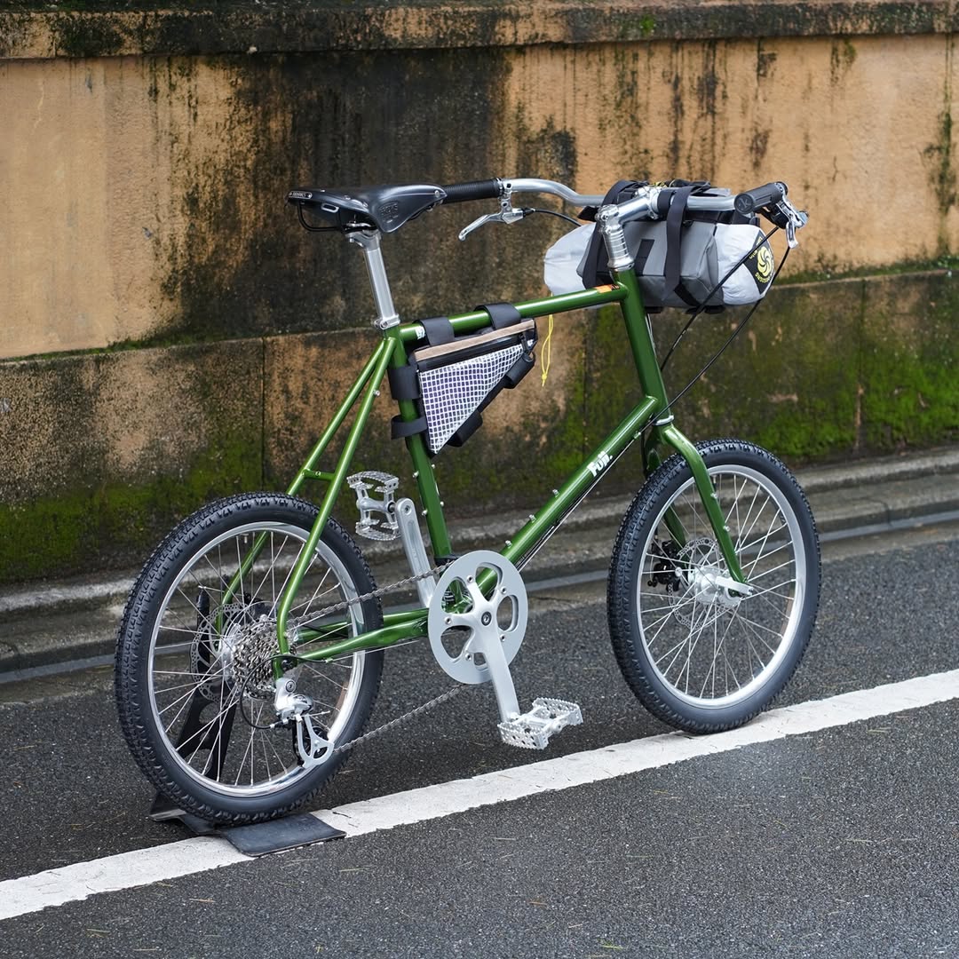 20インチのブロックタイヤで、公園の砂利道も鴨川沿いのダートも一気に冒険ステージに変えてしまう。