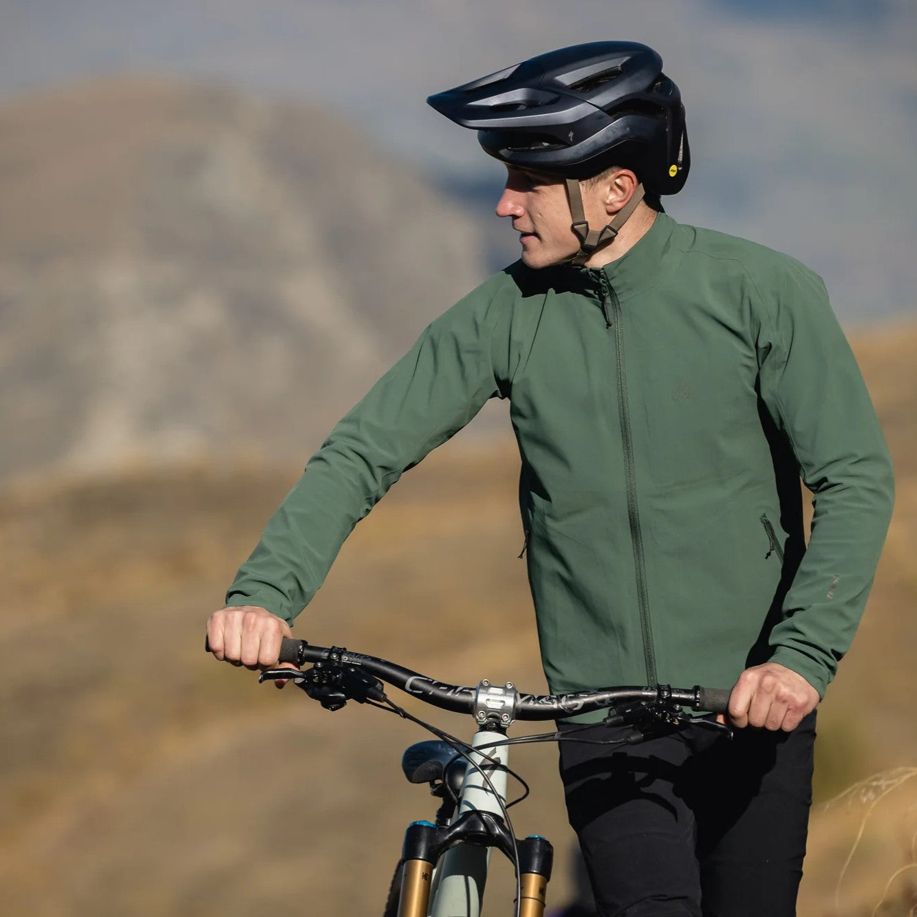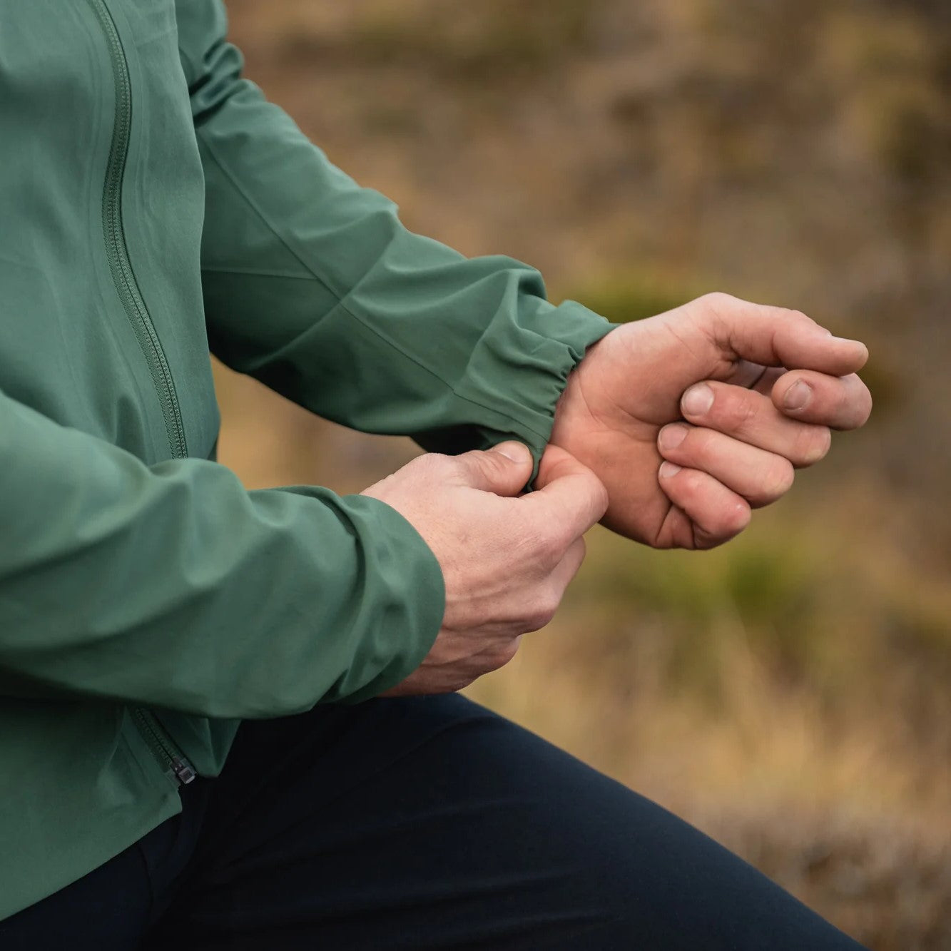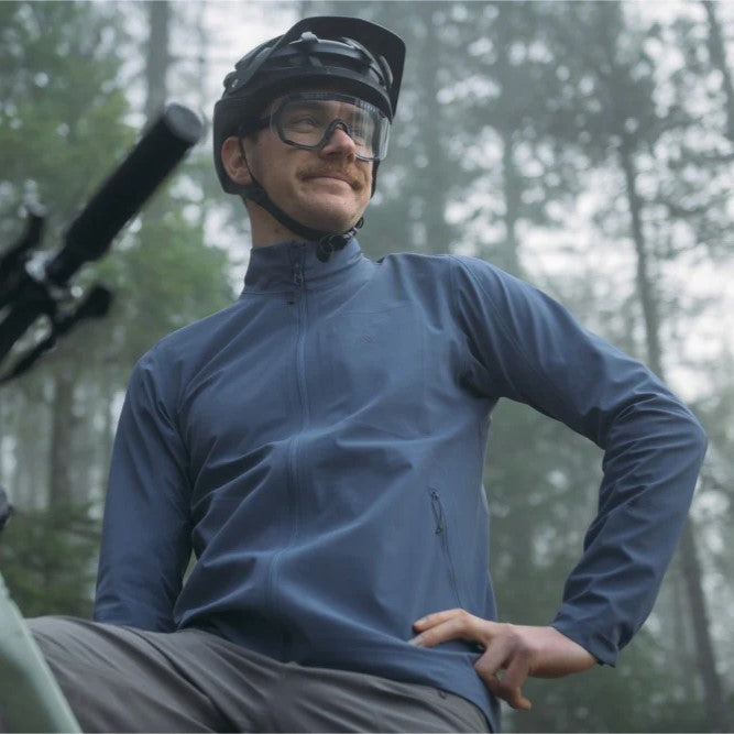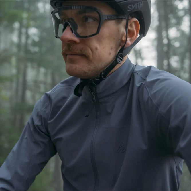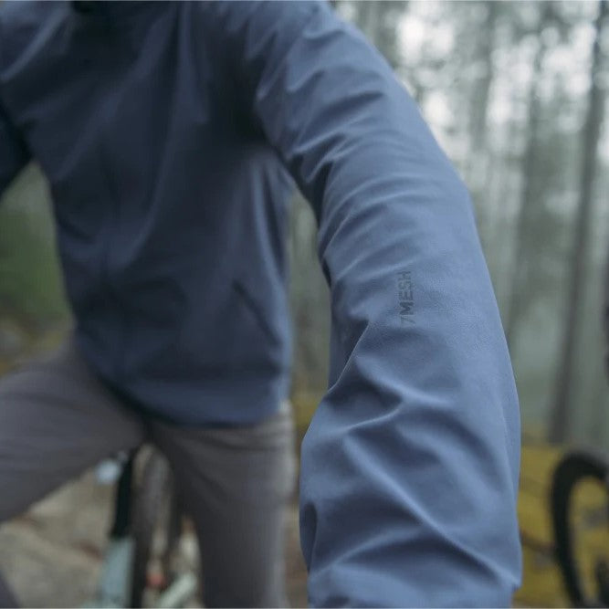裾はドローコードで調整可能、袖口はハーフエラスティック仕様でフィット感をキープ。胸元と左袖のリフレクティブ7meshロゴがアクセントに。