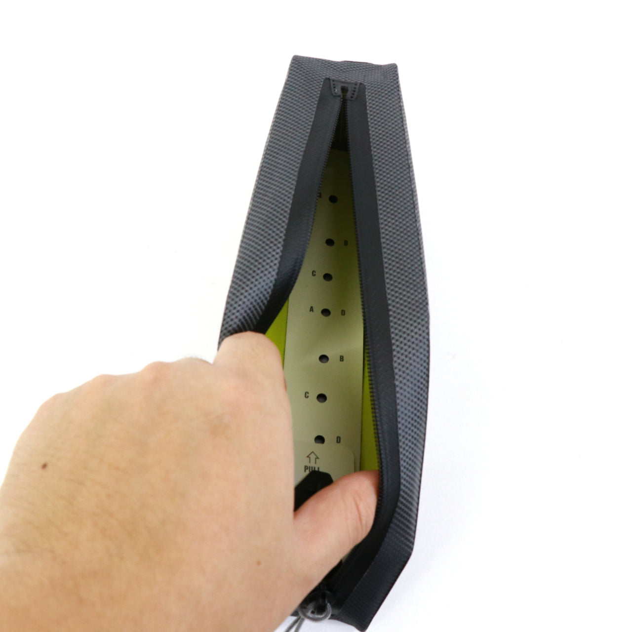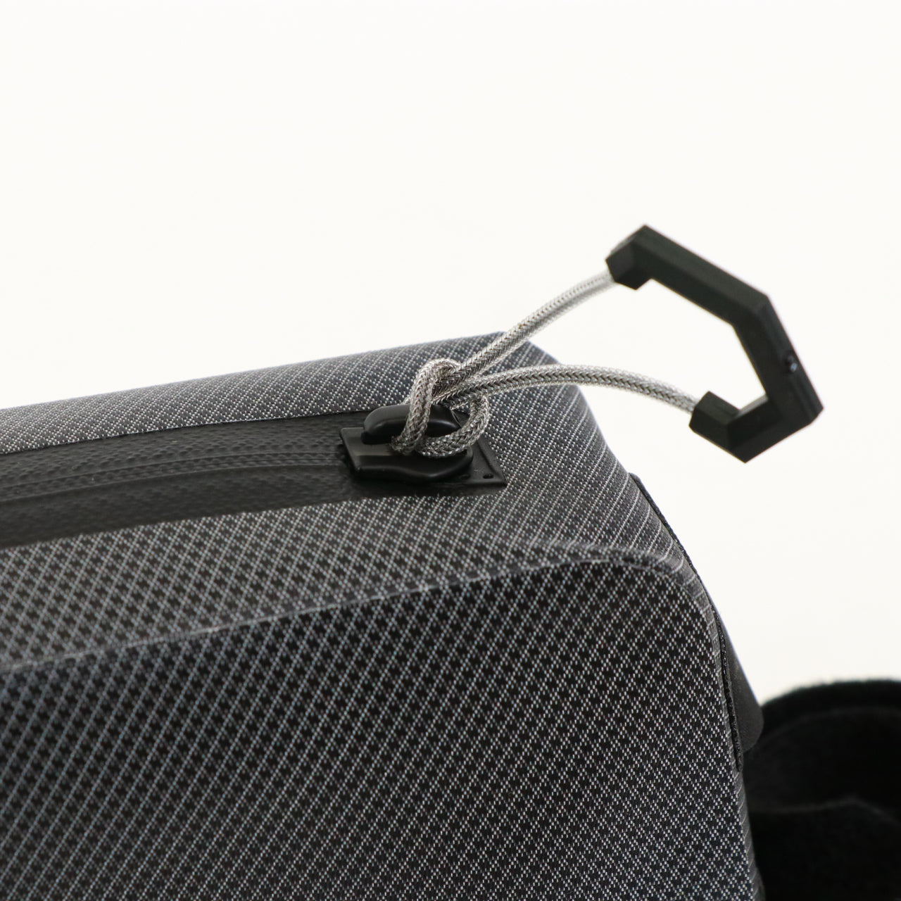 サイコンやバッテリーのコードも通せるケーブルポート付きで、バイクパッキングやブルベなど幅広いスタイルに対応。必要最小限をスマートに持ち運ぶ1Lサイズです。