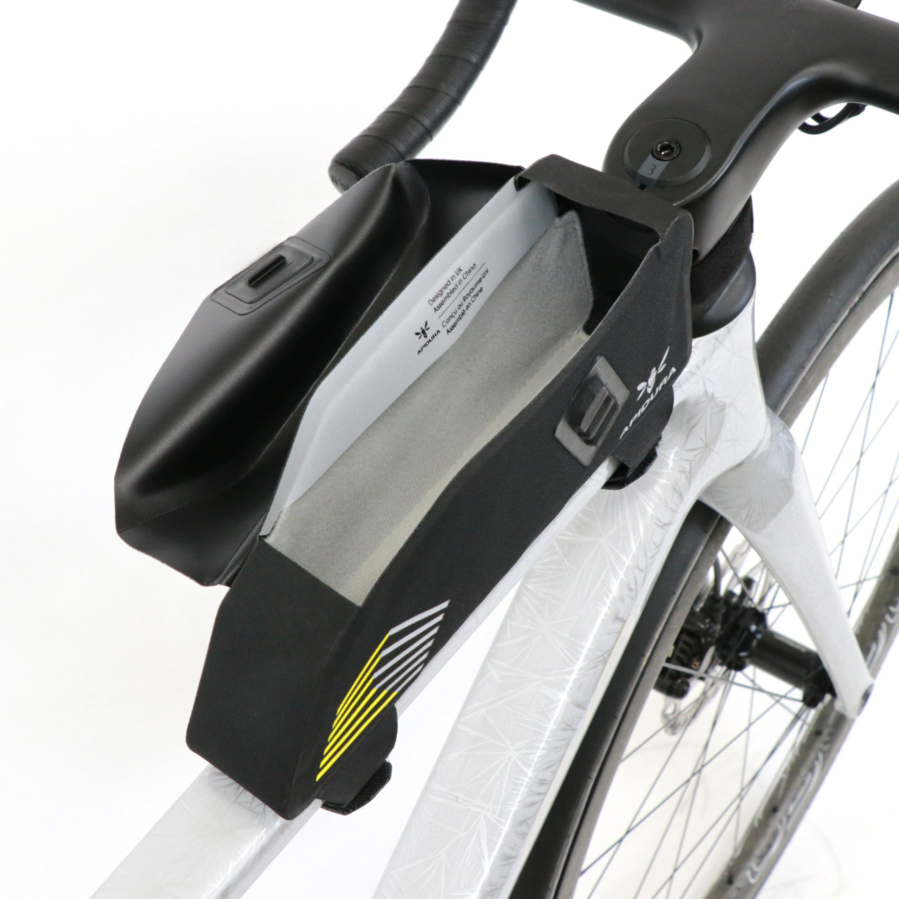 超軽量&完全防水のトップチューブバッグ。マグネット開閉で片手操作も簡単。