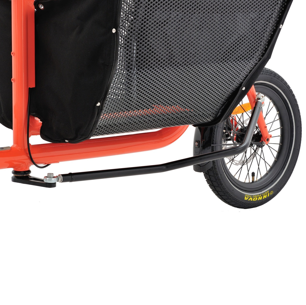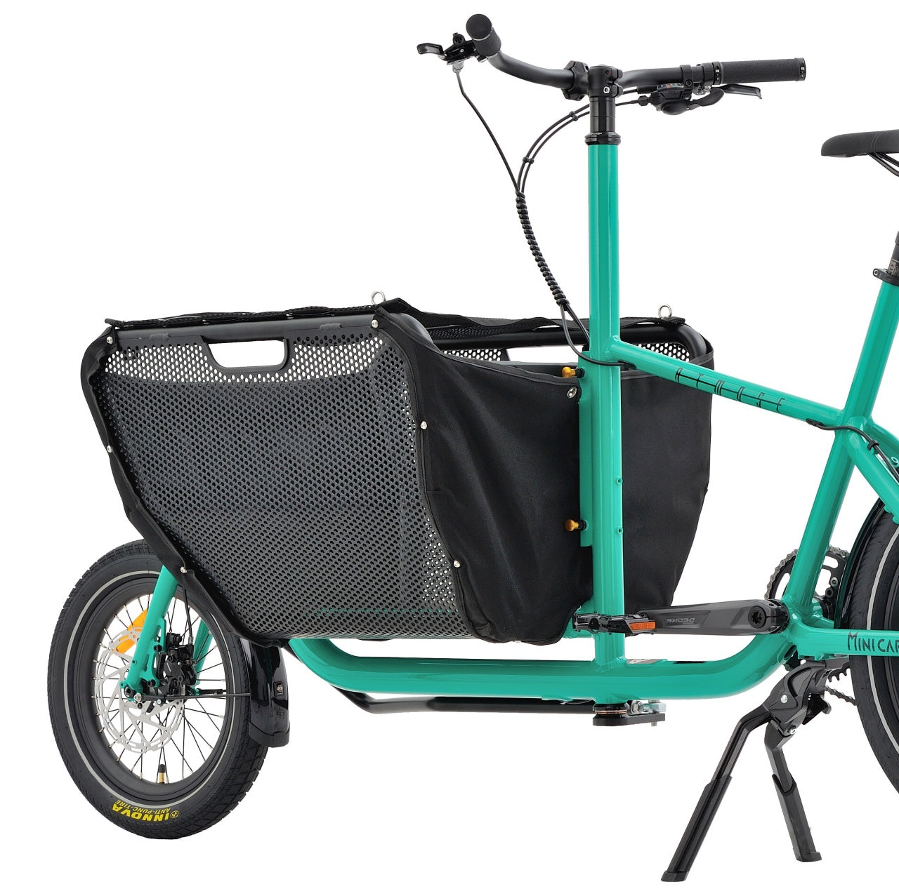 全長1960mmの扱いやすいサイズに、高い積載力と快適な走行性能を融合しました。無駄を削ぎ落としたデザインと機能美が調和した次世代のカーゴバイクです。