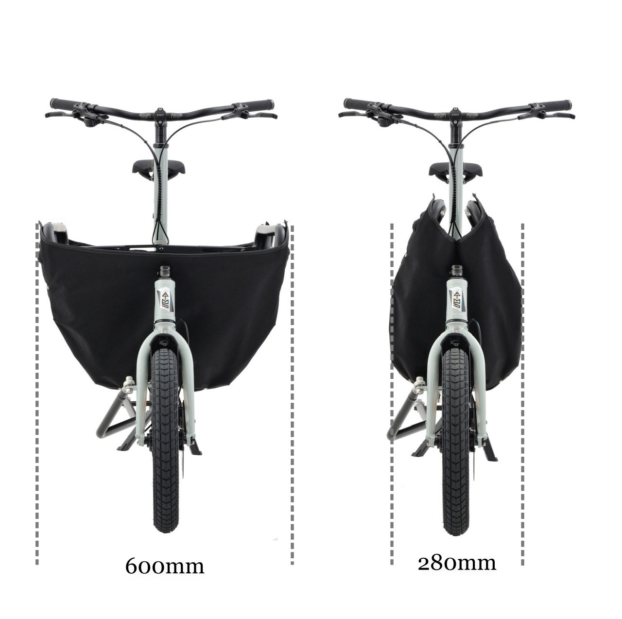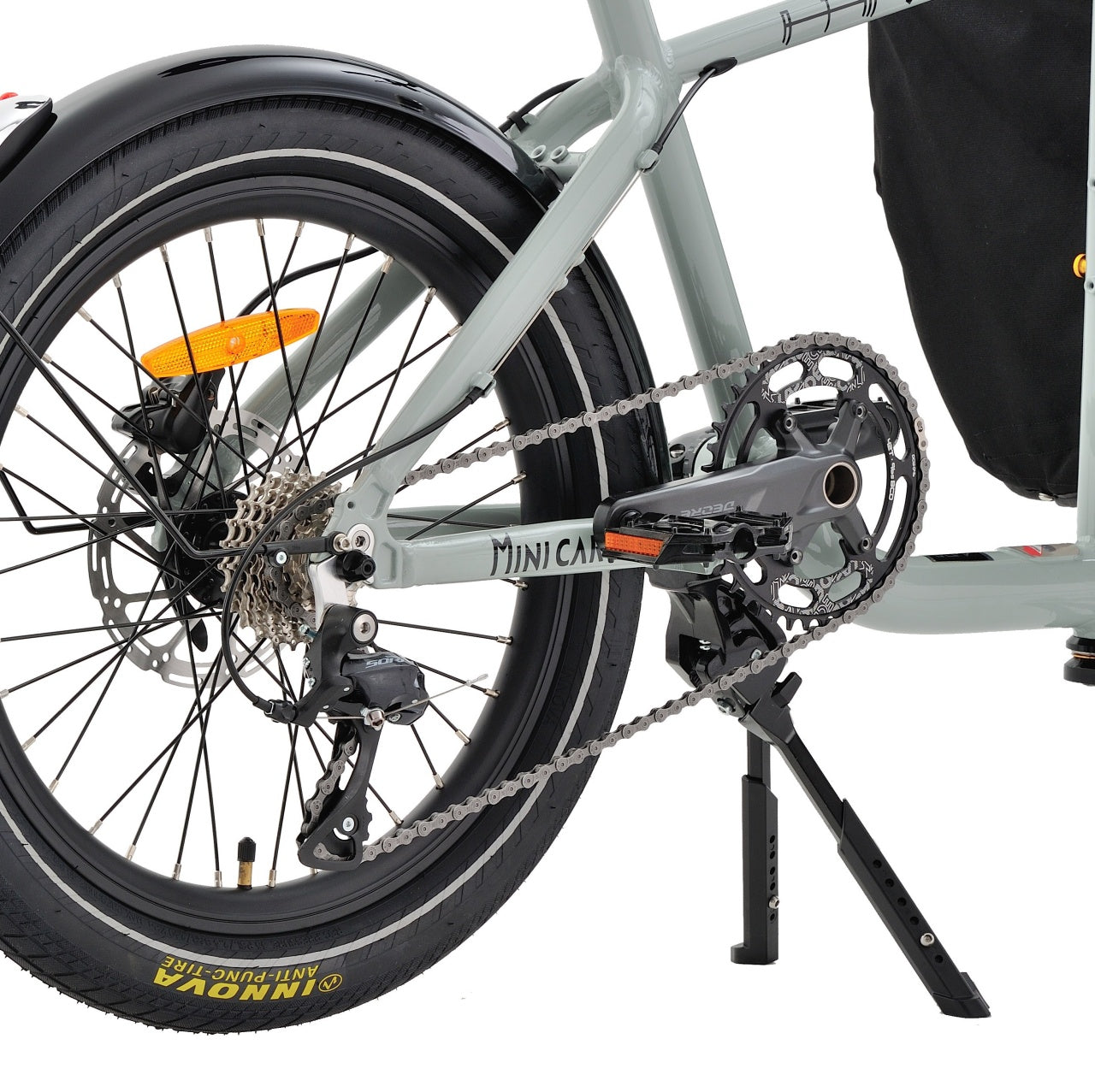 前後の太めタイヤで安定感があり、キャンプギアや買い物の荷物も余裕で積めます。“カーゴバイクがほしいけど置き場所が…”という方に、まさにベストな選択肢です。