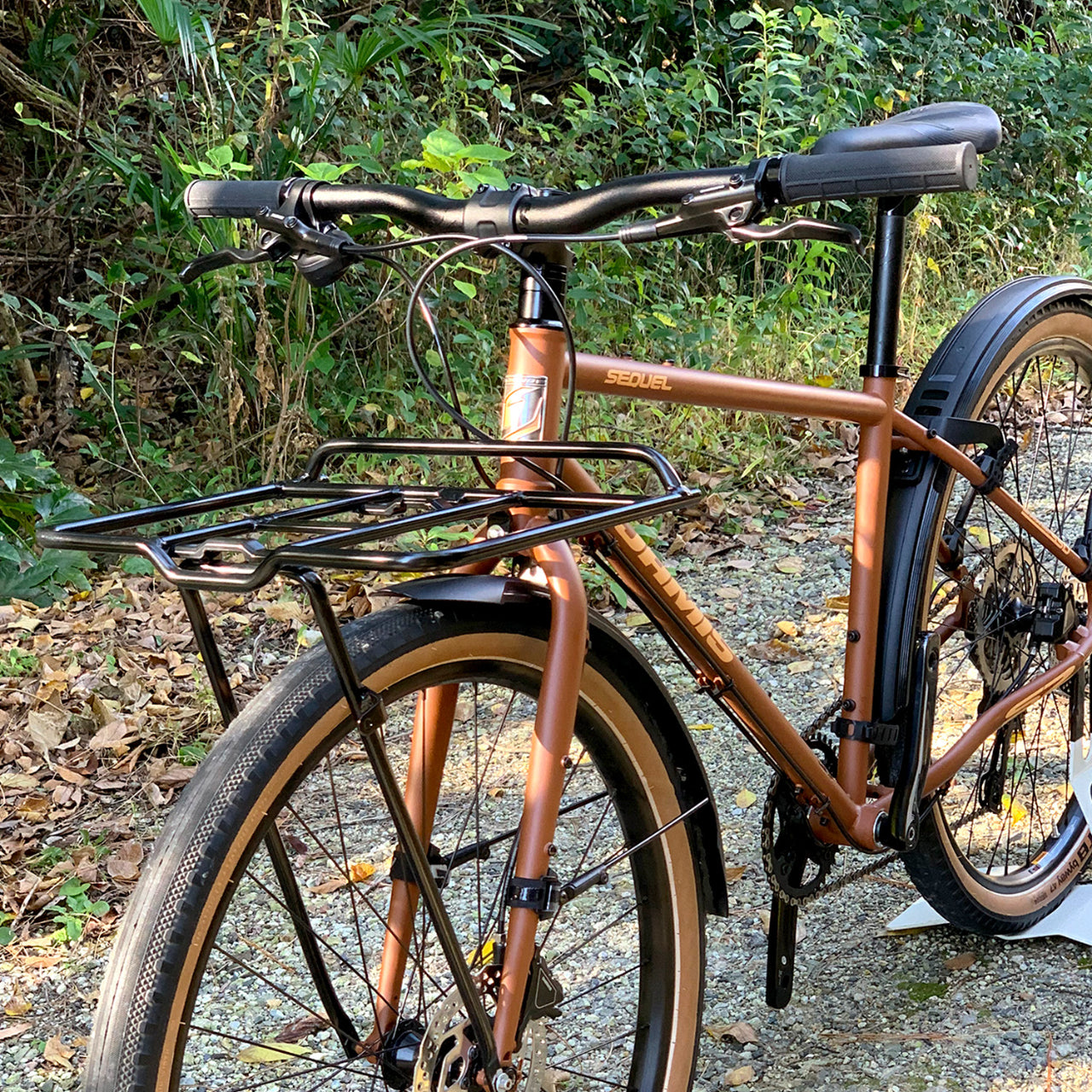 見た目もシンプルでどんな自転車にも馴染みやすく、街乗りにもツーリングにも使いやすいフロントキャリアだと思います。
