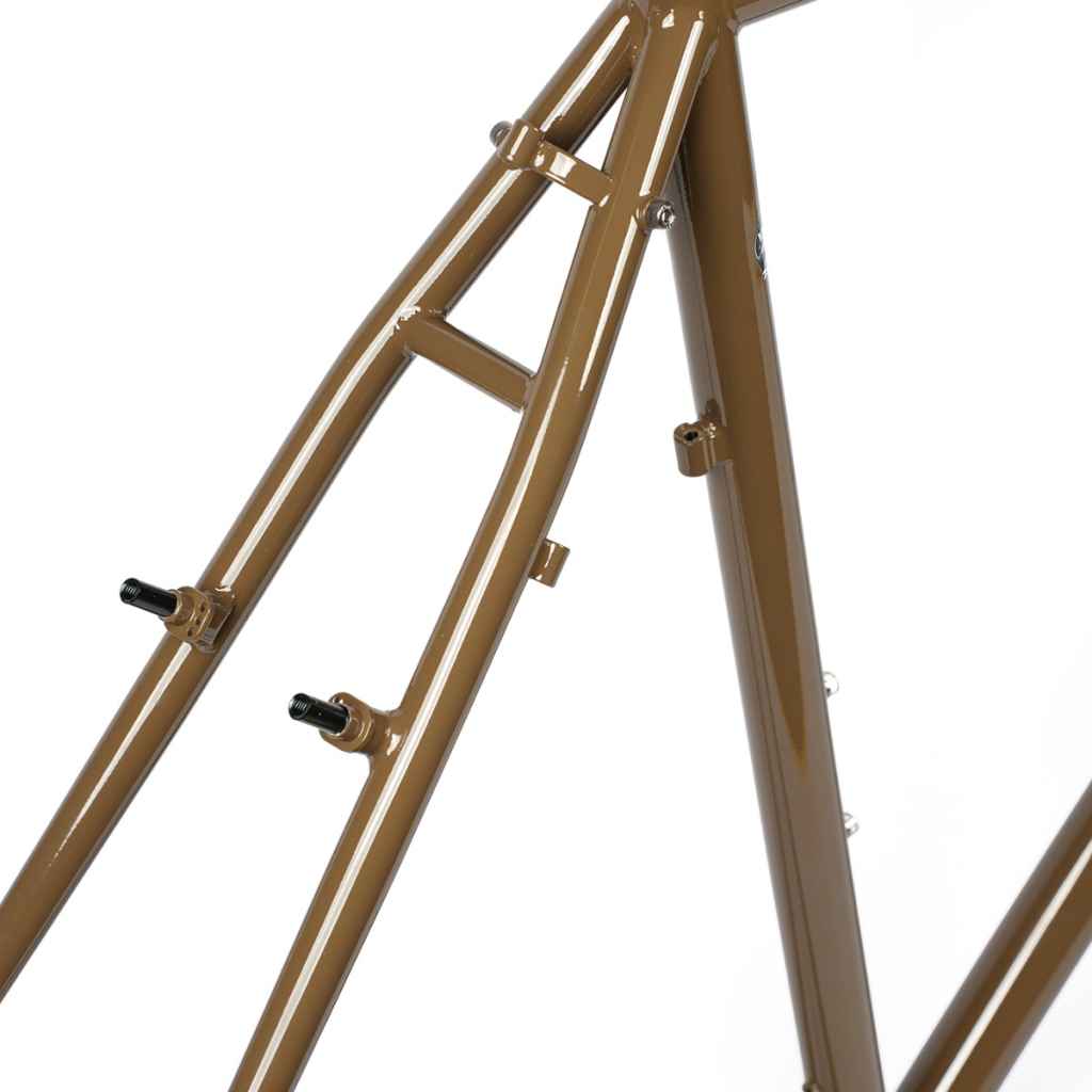 90年代のマウンテンバイク黄金期を感じさせつつ、現代的な拡張性と遊び心を備えたフレームは、旅にも通勤にもガチライドにもフィットします。一台で何役もこなしたい人にこそ選んでほしいフレームです。