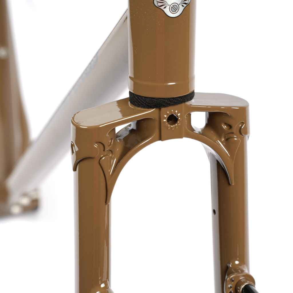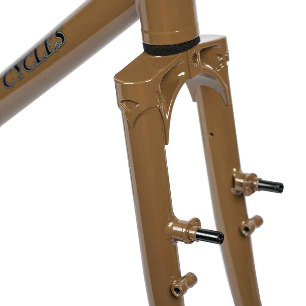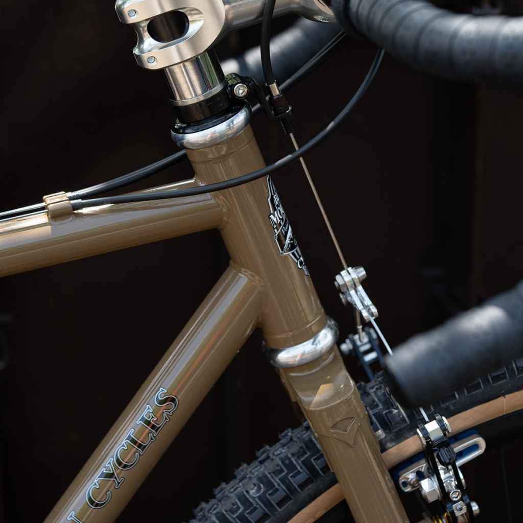 ダブルバテッドの4130クロモリチューブ、拡張されたタイヤクリアランス(700x50c)、多彩なダボ類、そしてシングルスピード化も可能なホリゾンタルドロップアウト。ドロップバーアドベンチャーバイクに求めるすべてを高次元で融合した、まさに“モンスター”な1本です。