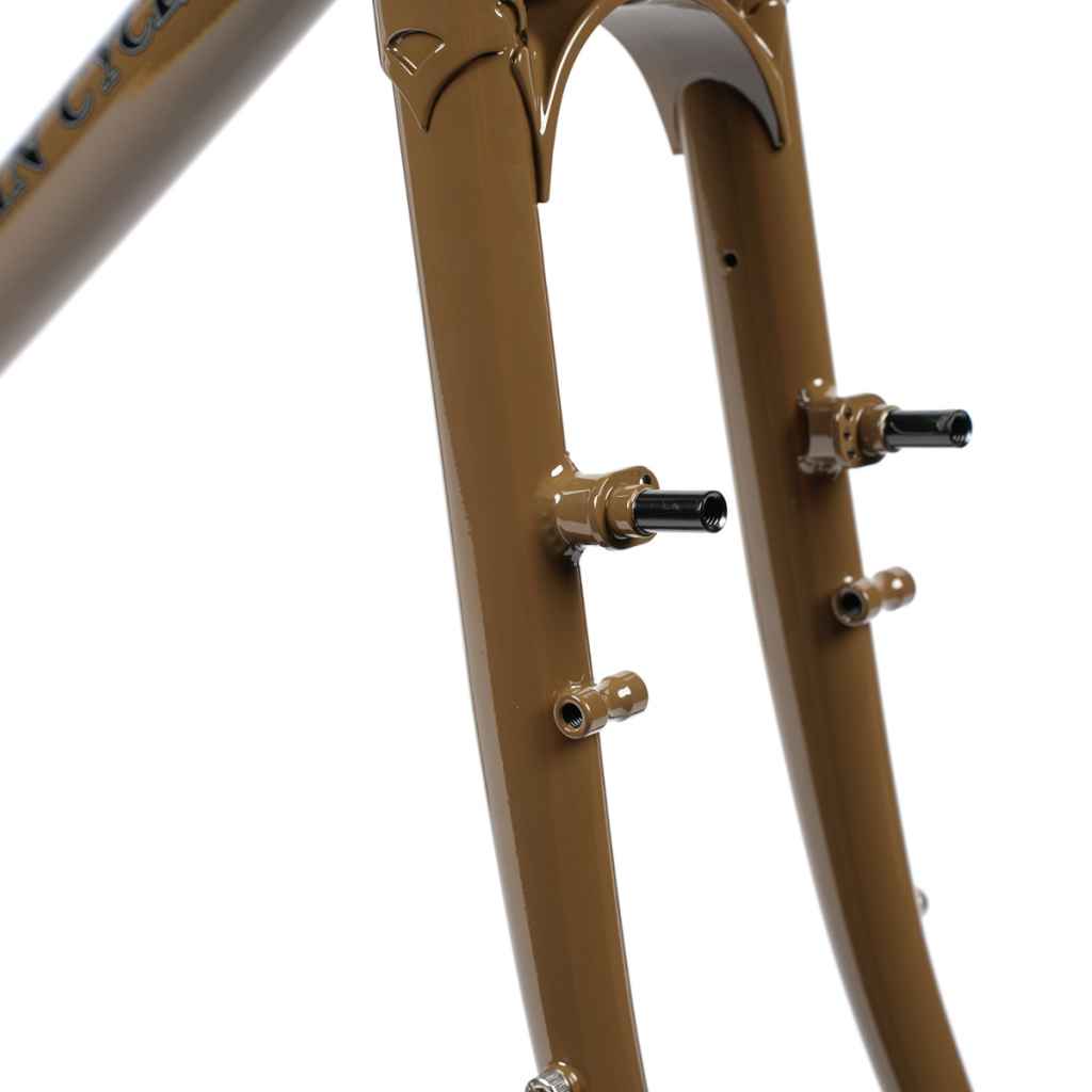 - クロモリ製(4130ダブルバテッド)のしなやかで耐久性あるフレーム