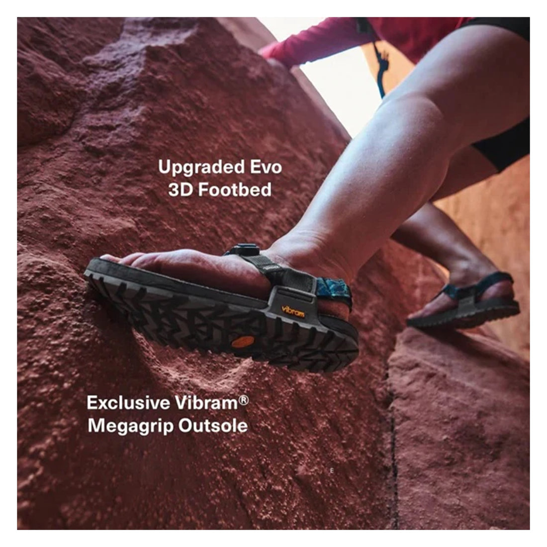ラインナップで最もパフォーマンスの高い Cairn Evo 3Dは、ヒールフックストラップ、グリップに優れたVibram® Megagripアウトソール、3Dフットベッドを備えた究極のアドベンチャーサンダル。ヒールストラップのプロGフック&ループシステムは、フロントストラップと同様に急流や泥々の場所でも外れることなくしっかりと機能します。