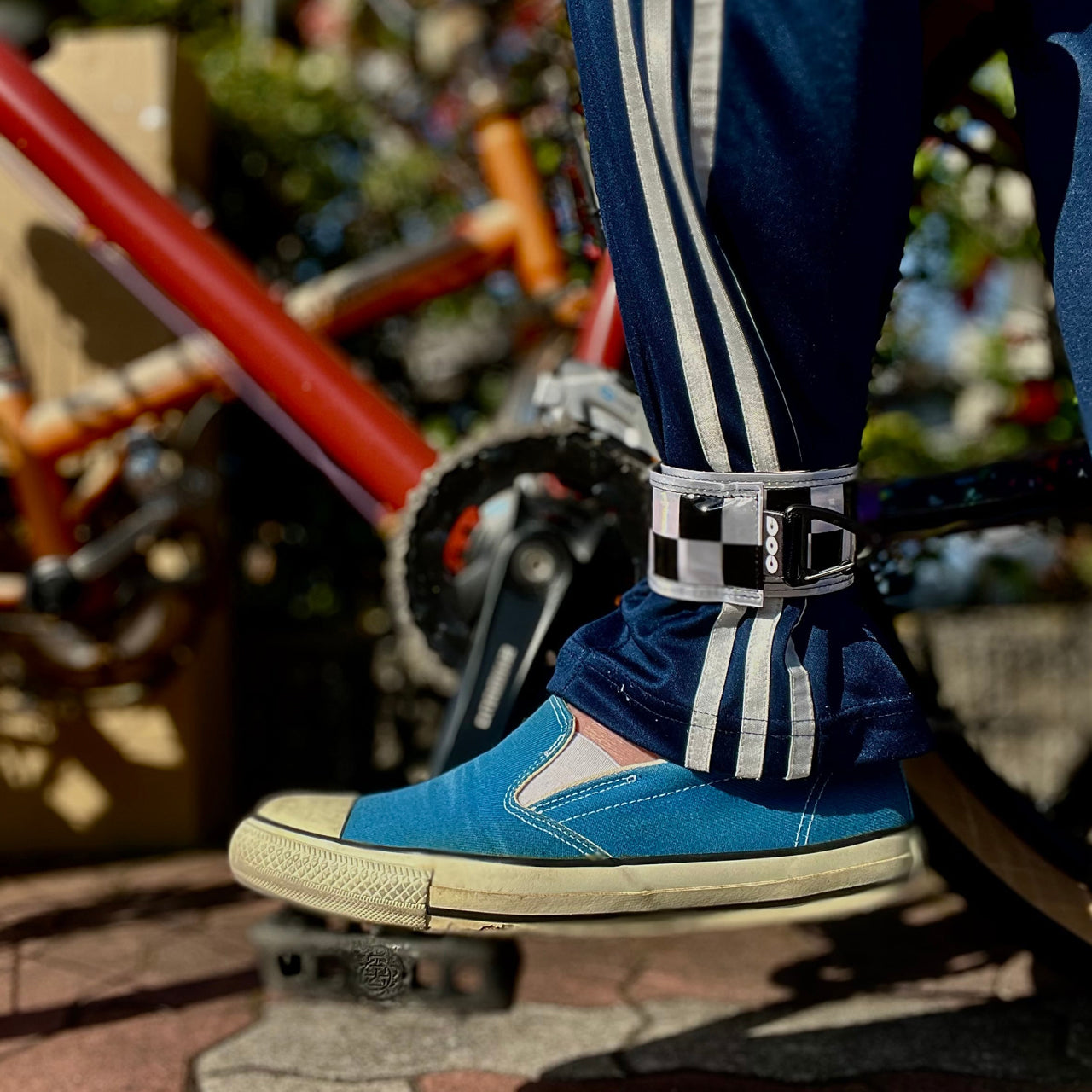 Fix Controlは、リフレクター素材とチェッカーフラッグ柄が特徴のアンクルバンド