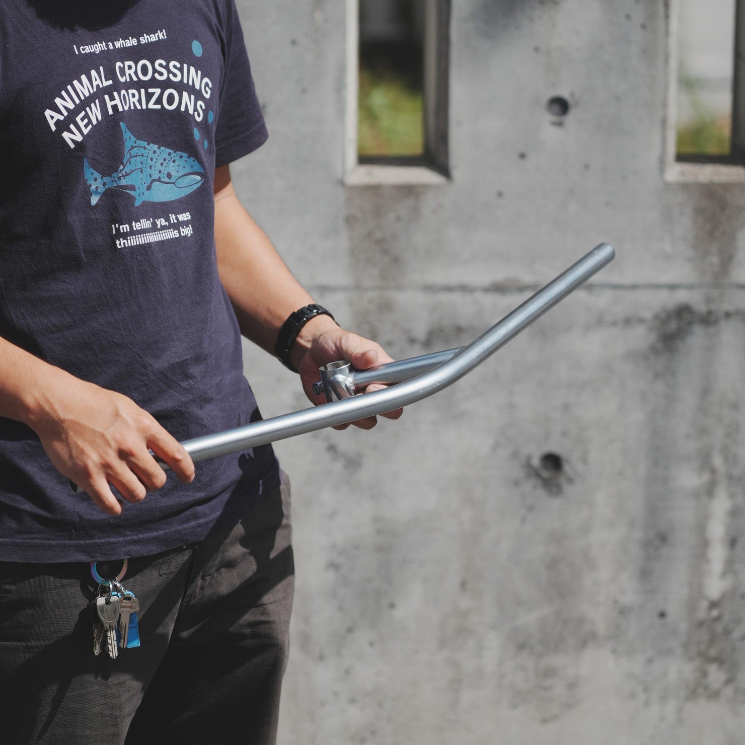 突き出し90mmのUI-2ステムにバックスウィープ15°のフラットバーを取り付けたポジション