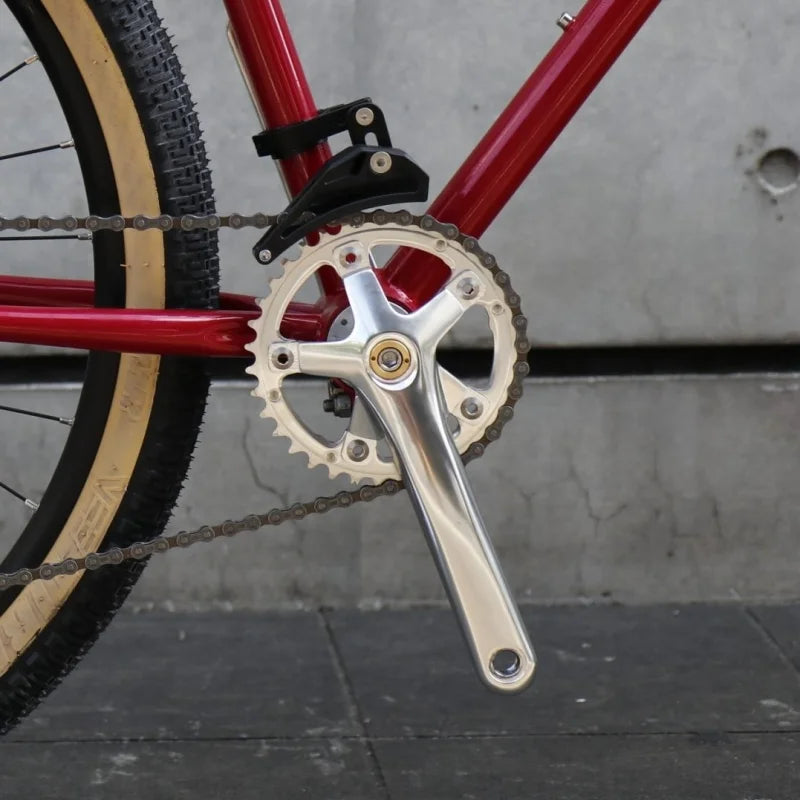 様々な自転車のカスタムにオススメなクランクアームセット。PCD110/5アームのオーソドックスな規格でフロントシングル/ダブル両対応と汎用性高く、全体の雰囲気を邪魔しないスッキリとしたデザインが魅力。
