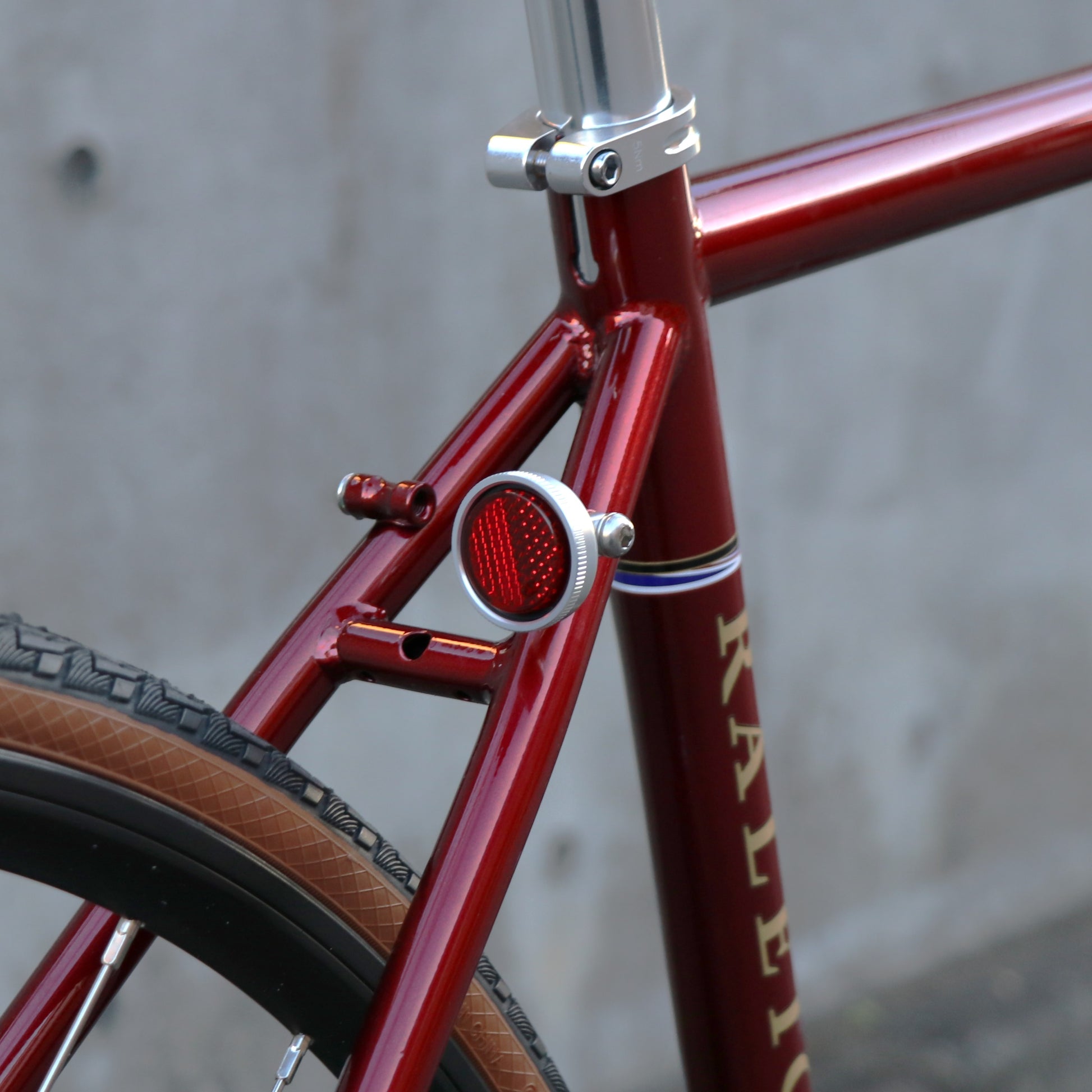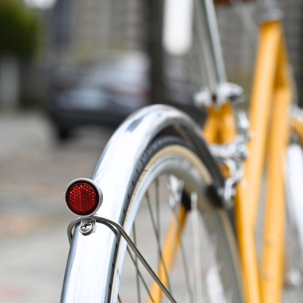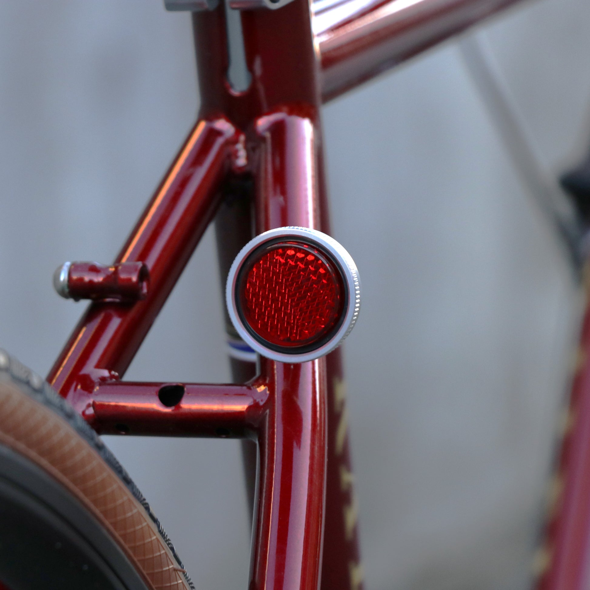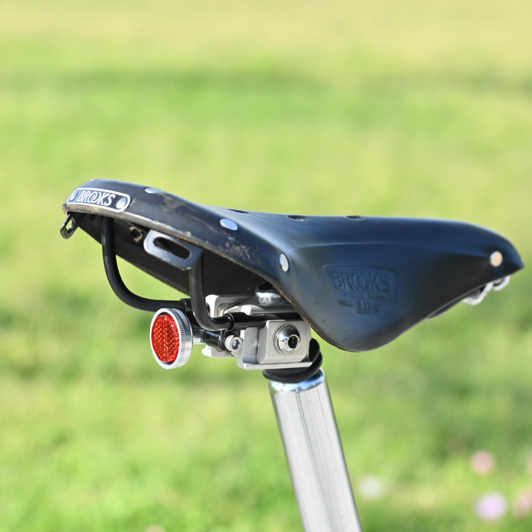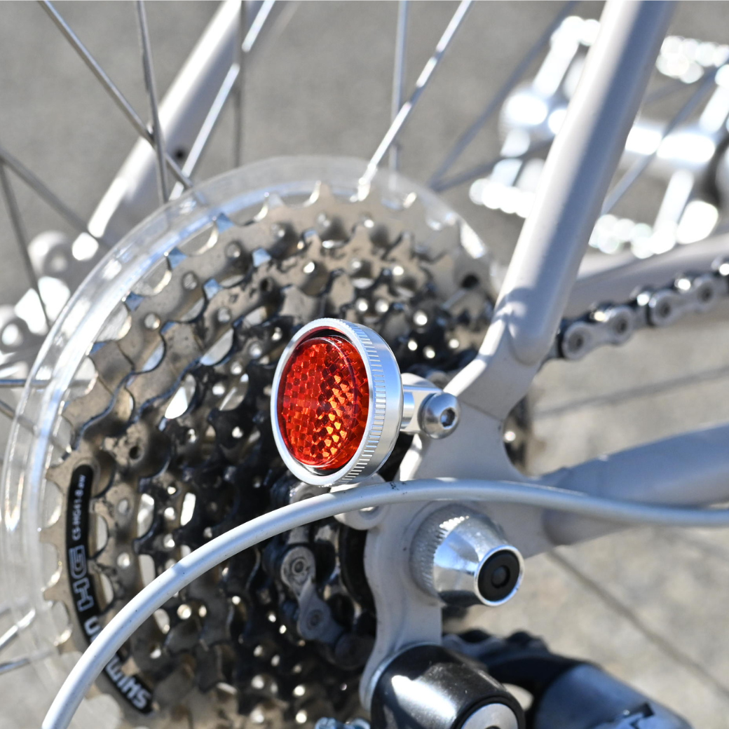 USBライトが主流の今、あえて「リフレクター」を選ぶのがこの商品の粋なところ。金属の削り出しが美しく、クロモリやツーリングバイクとの相性も抜群です。