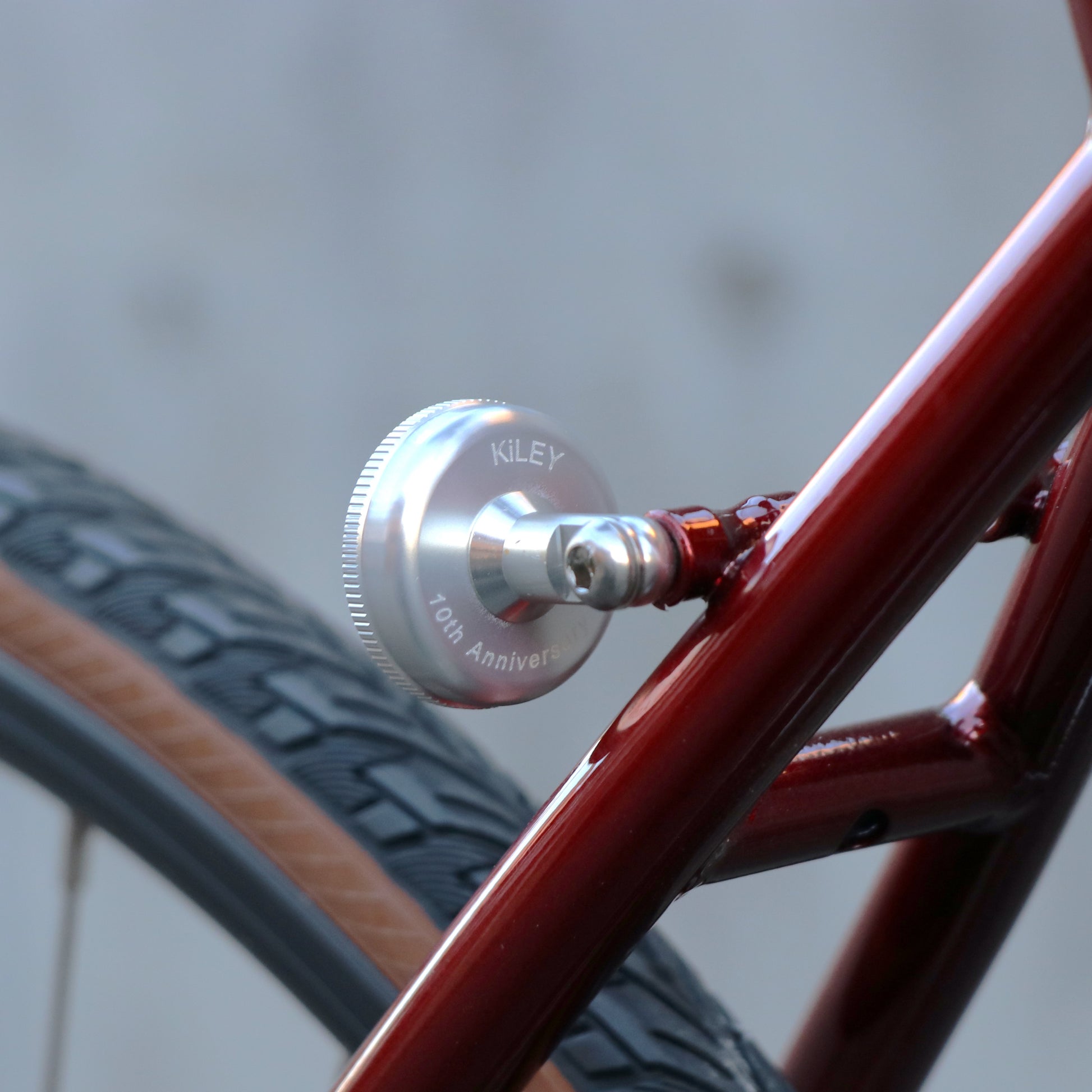プラスチック製では出せない金属の質感と、クラシカルなフォルムが魅力のKiLEY「コインリフレクター」。小さなパーツながら、夜道ではしっかりと存在を示し、愛車のリアビューを引き締めます。