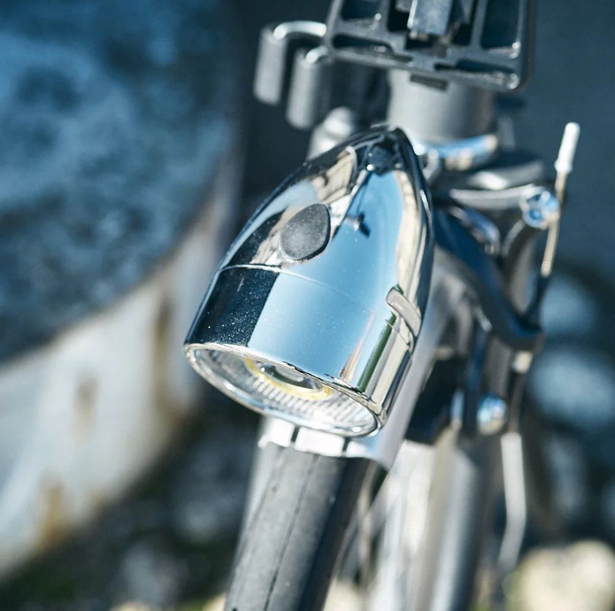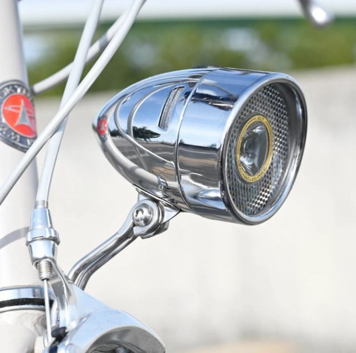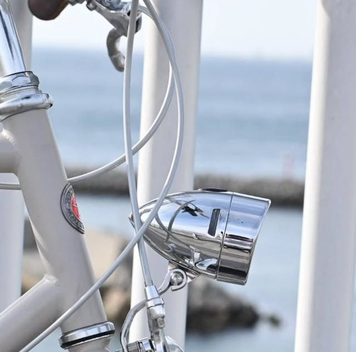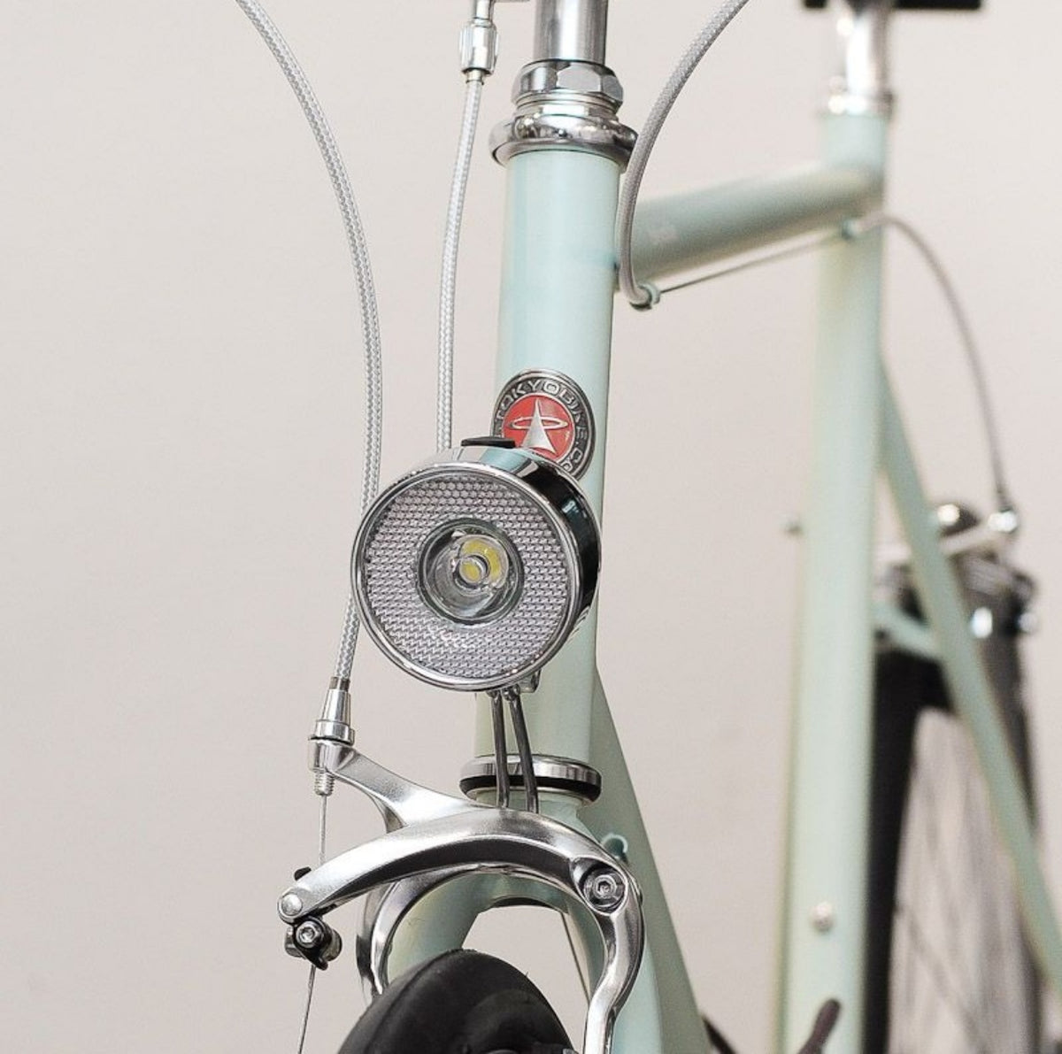 クラシックな見た目に惹かれて取り付けた方が「想像以上に明るい!」と驚かれるライトです。スチール特有のツヤと質感は、クロモリフレームとの相性が抜群。