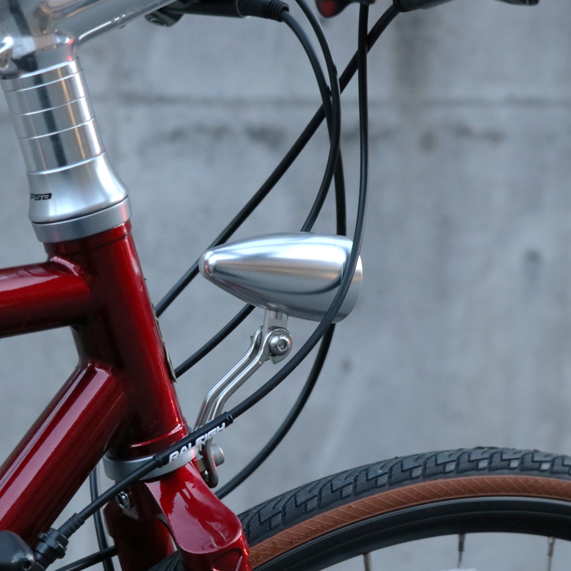 「砲弾型=クラシックバイク専用」というイメージを良い意味で覆してくれるライトです。モダンなクロモリやミニベロ、ちょっとクセのあるアーバンバイクにもすんなり馴染んでくれますよ。
