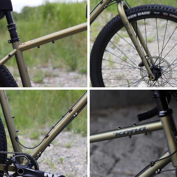 あらゆる荷物の積載方法を可能にする無数のダボ穴、MTB並みのタイヤクリアランス。重戦車のごとき佇まいとは裏腹に、漕げばグイっと前に出る気持ちの良い乗り味。それでいてダートに飛び込めばMTBのごときハンドリングで存分に楽しみつくす事が出来きるモデル。