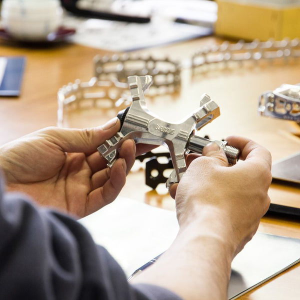 W100×L90mmのワイドボディは、MTBライドから街乗りまで高い安定感を発揮。スムーズなベアリングの回転もMKSならでは。どこまでも踏んでいたくなる、クセになるフィーリングです。