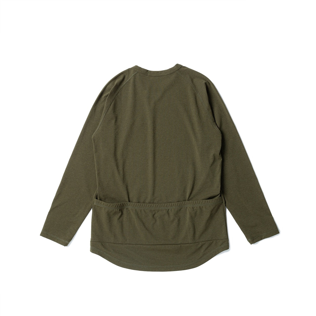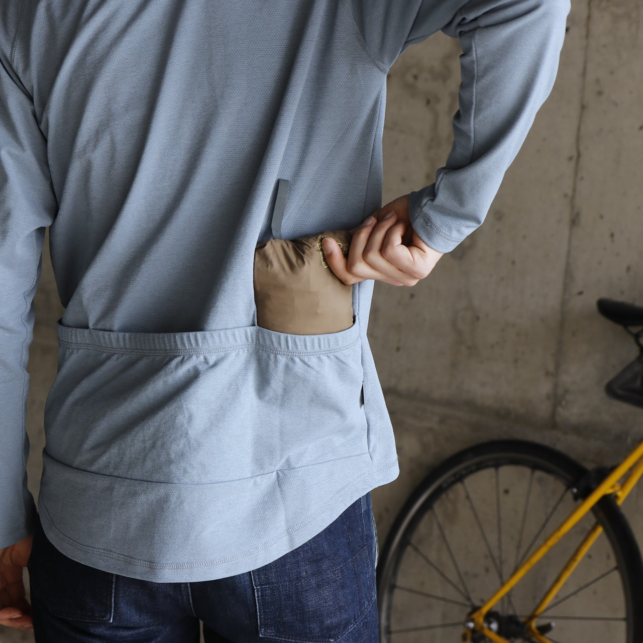 前傾姿勢でも腰が見えにくいバックロングテールや3連バックポケット、肩周りが動きやすいスプリットラグランスリーブで、自転車乗りに嬉しい仕様が満載です。