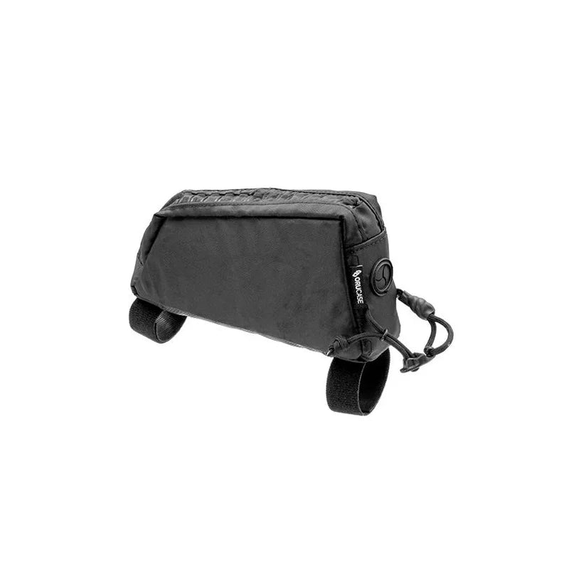 2本のベルクロ、もしくはボルトオンでトップチューブに固定可能。底面の滑りにくい素材とステム下で固定するラインロック付きのパラコードで安定性を確保。- 商品説明