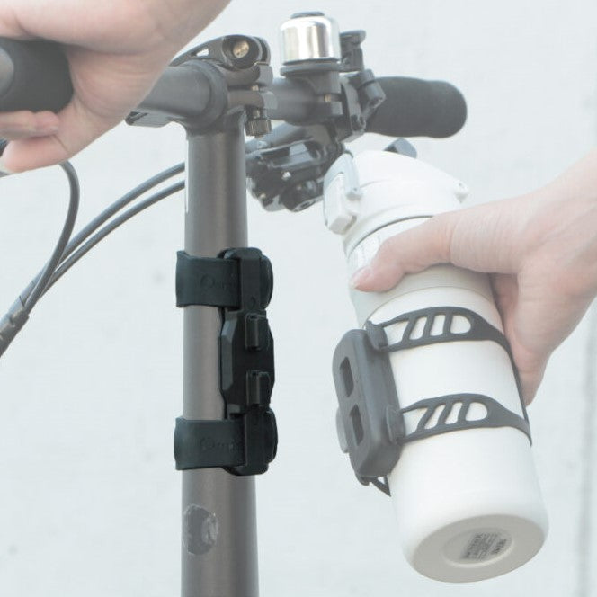 ダボ穴がなくてボトルケージを付けられない方に、ぜひおすすめしたいアタッチメントです。シリコンバンドがしっかりとフレームに巻き付き、安定感があるので走行中も安心。