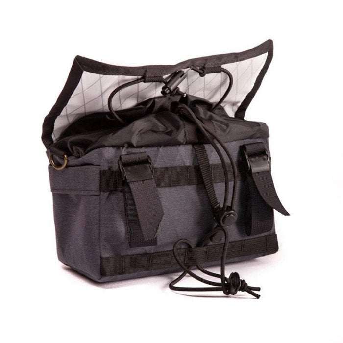 このバッグの最も良いところは、ジッパーを使わないシンプルなフタの開閉システムにあります。 メインフロアへはフック付きのドローコードで片手で簡単にアクセスできます。