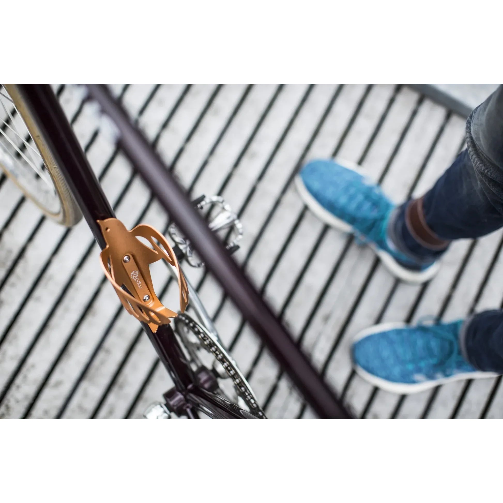 5052アルミ製で軽量かつしなやか、日常使いのバイクにも自然に馴染むボトルケージ。