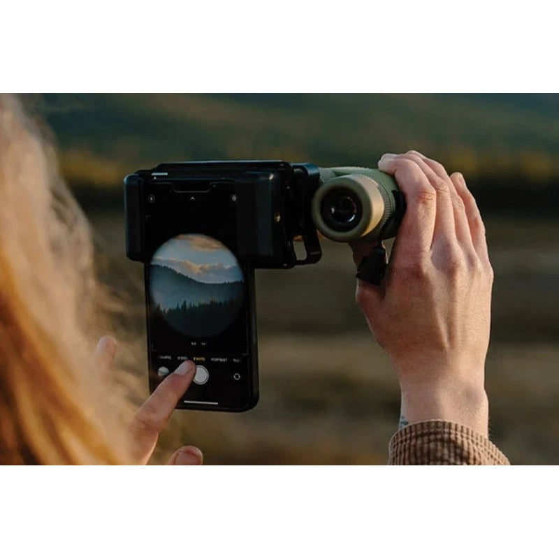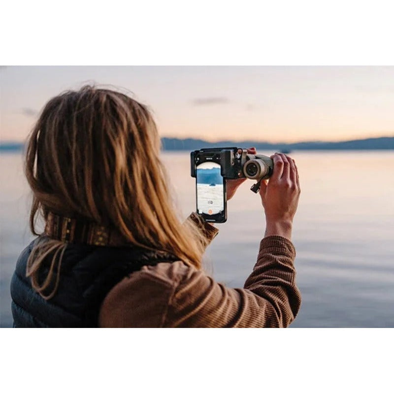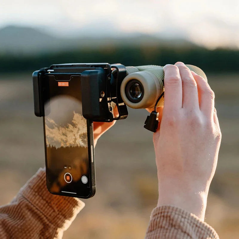 フレームは、どの双眼鏡・単眼鏡でもしっかりとグリップするように設計されており、スプリング式のフォンクランプがスマートフォンを固定し、センタリングを簡単にします。手放せないアイテムです!