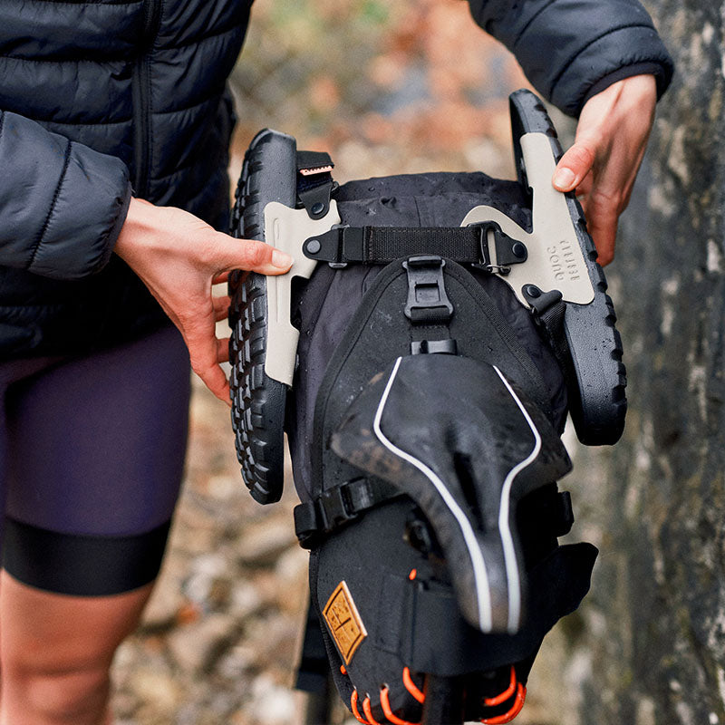 さらに、特別設計の極厚ウェビングストラップは、QUOCの高品質マイクロファイバーと組み合わせることで、サドルバッグへの装着が可能。ライド中はロックバックルでしっかりと固定し、必要なときにはすぐに取り出して履ける、ツーリングに最適な携帯性を実現しています。Restrapによる革新的な成形と接着技術により、耐久性・快適性・調整性のすべてを高次元で両立。