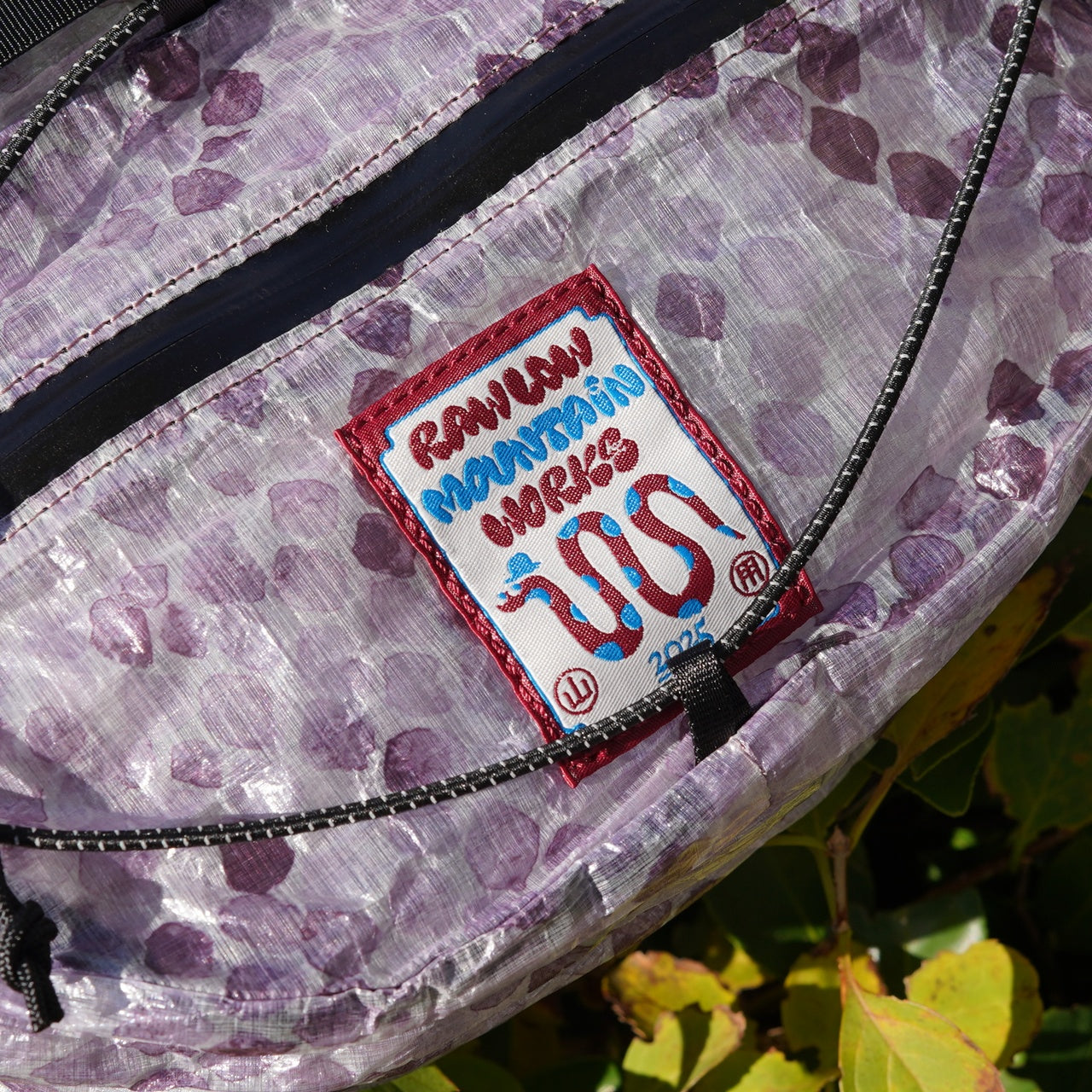 巳年限定のNuts Pack DCF。スネークスキン柄×ジェリー鵜飼氏ロゴをあしらった特別仕様で、3.5L・80gの軽量性と携帯性も両立した万能ウエストバッグ。