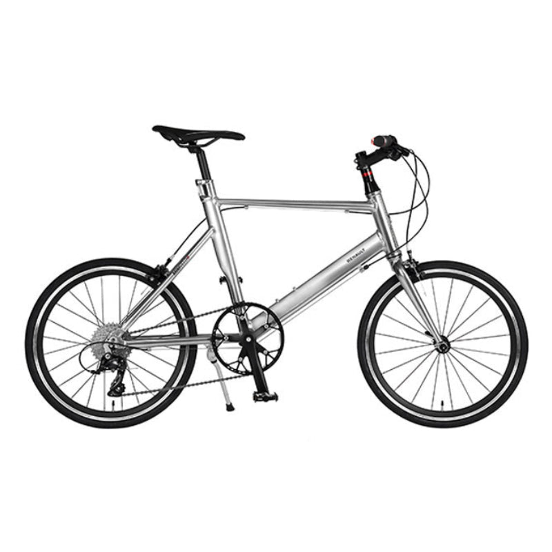 軽快な走りと洗練されたデザインで人気の【RENAULT(ルノー)MINIVELO9】は、街乗りをスマートに楽しみたい大人のための9段変速ミニベロ。軽量な6061アルミ製エアロフレームに20インチ(451規格)ホイールを装備し、コンパクトながら高い走行性能を備えた一台です。