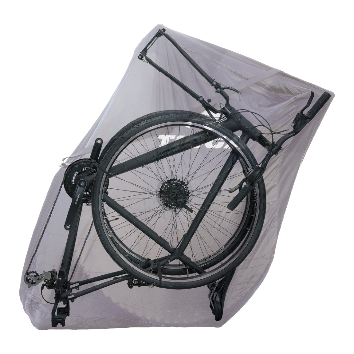 薄くて強度のある70デニールナイロンを採用し、軽量ながらもしっかりと車体を包み込む設計。撥水加工を施した生地は扱いやすく、輪行時の突然の雨にも安心です。