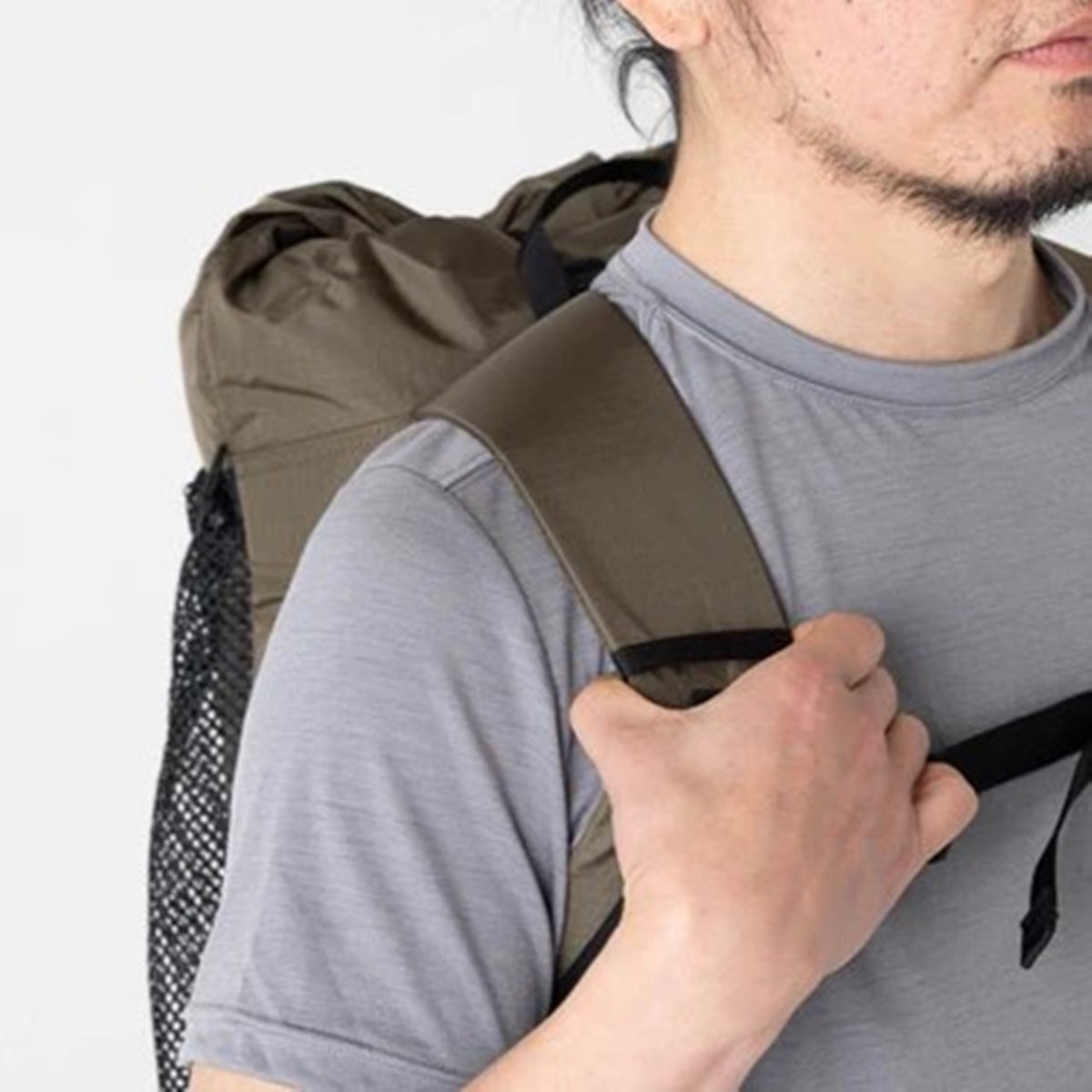 フロントには、アクセスしやすい大型のメッシュポケットを配置。レインギアやウォーターボトル、ヘッドライト、ファーストエイドなど、すぐに取り出したいアイテムを効率よく収納できます。容量をうまく活かせば、SUL(スーパーウルトラライト)スタイルでのオーバーナイトハイクにも対応可能です。