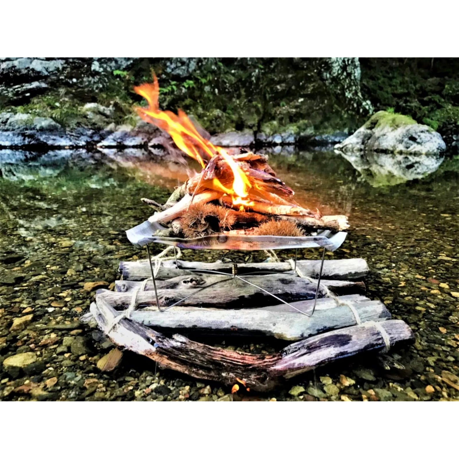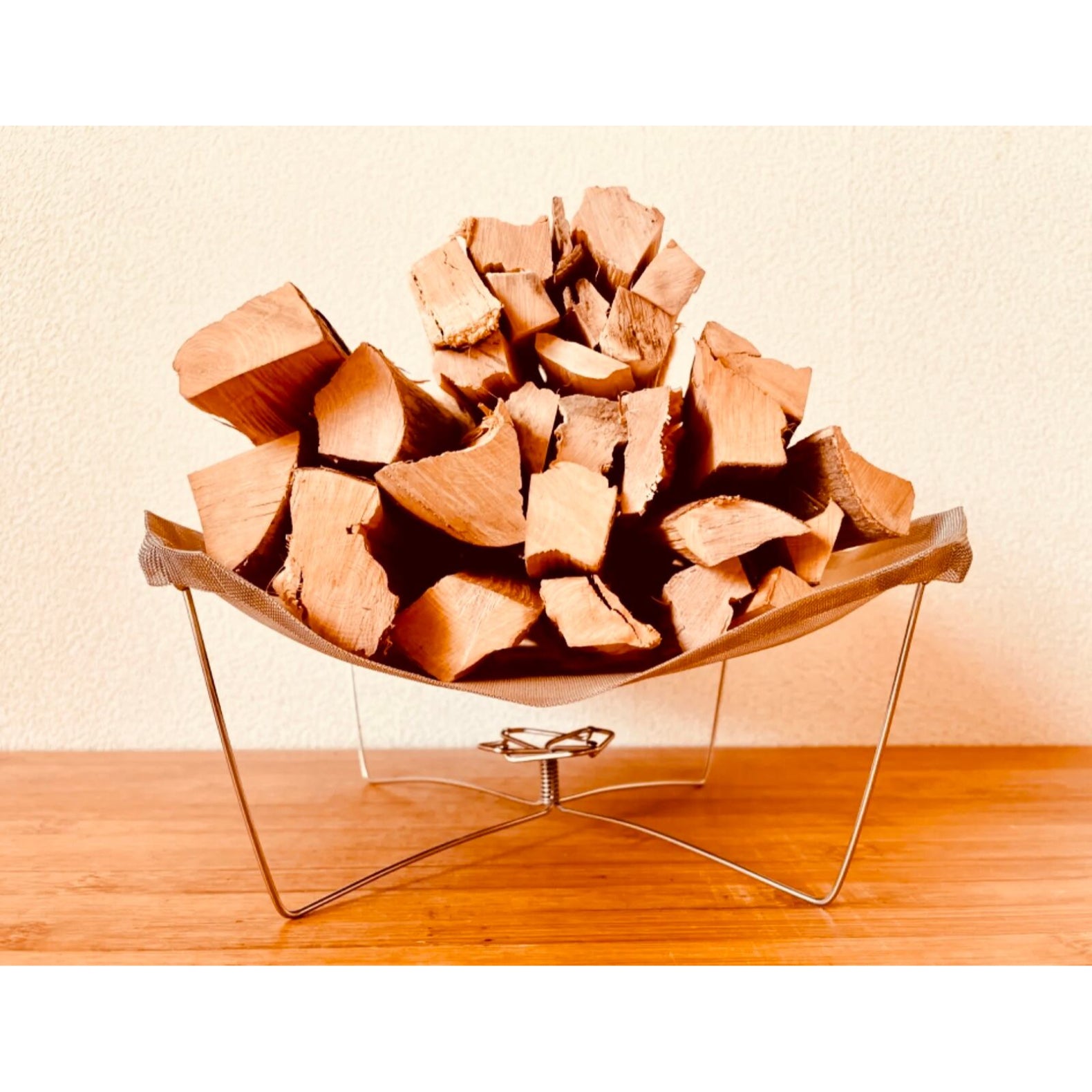 旧規格スポークを再利用した超軽量焚き火台UKIBI。