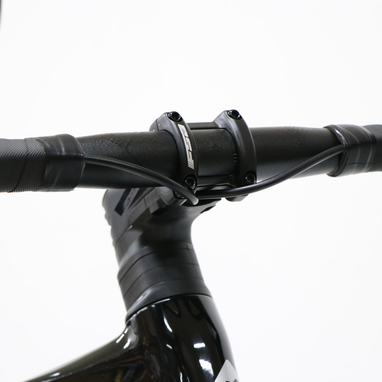ダウンチューブは前方を三角形、後方を四角形とする断面形状とし、空力と剛性のバランスを最適化。シートチューブは後輪とのクリアランスを極限まで詰めた形状で整流効果を高め、リア三角はREACTOシリーズ同様のセミエアロ構造で快適性も確保しています。 - ケーブルルーティングは、従来のフレーム前面開口部を廃し、ステム内で処理するフル内装化を実現。