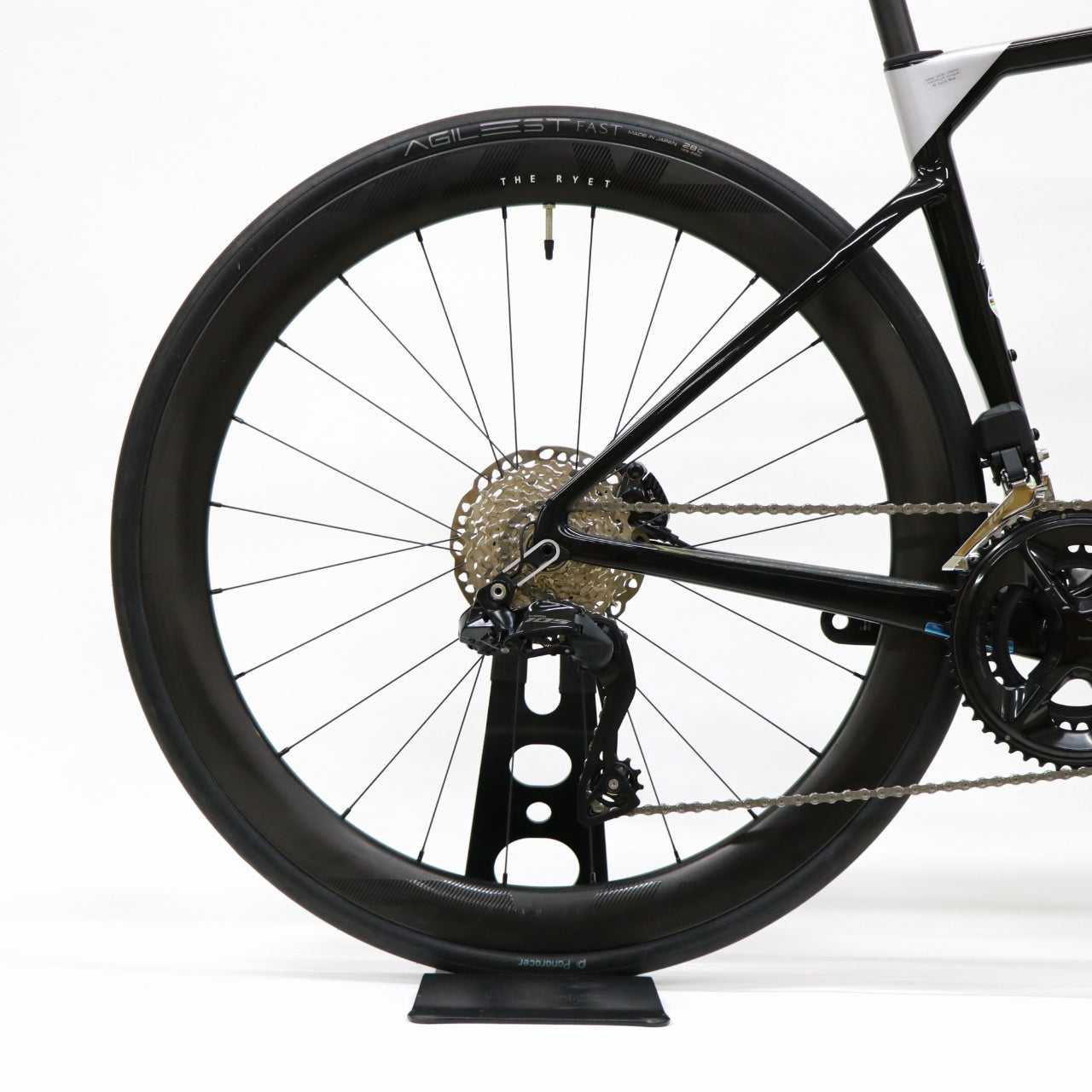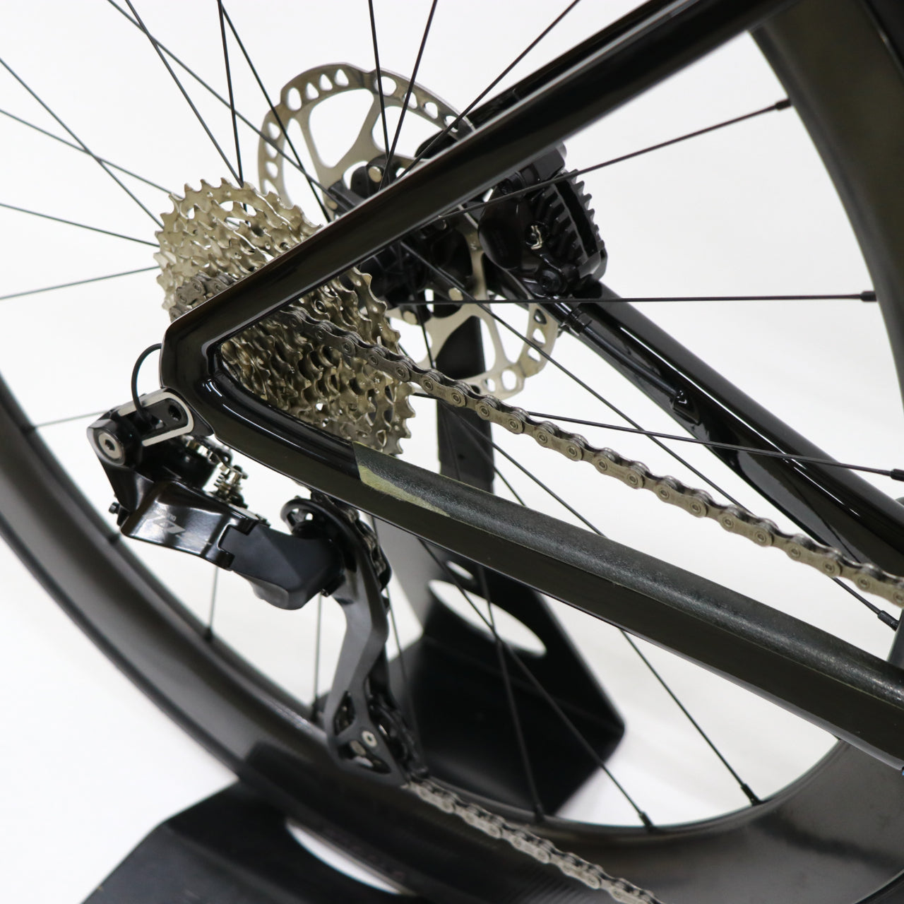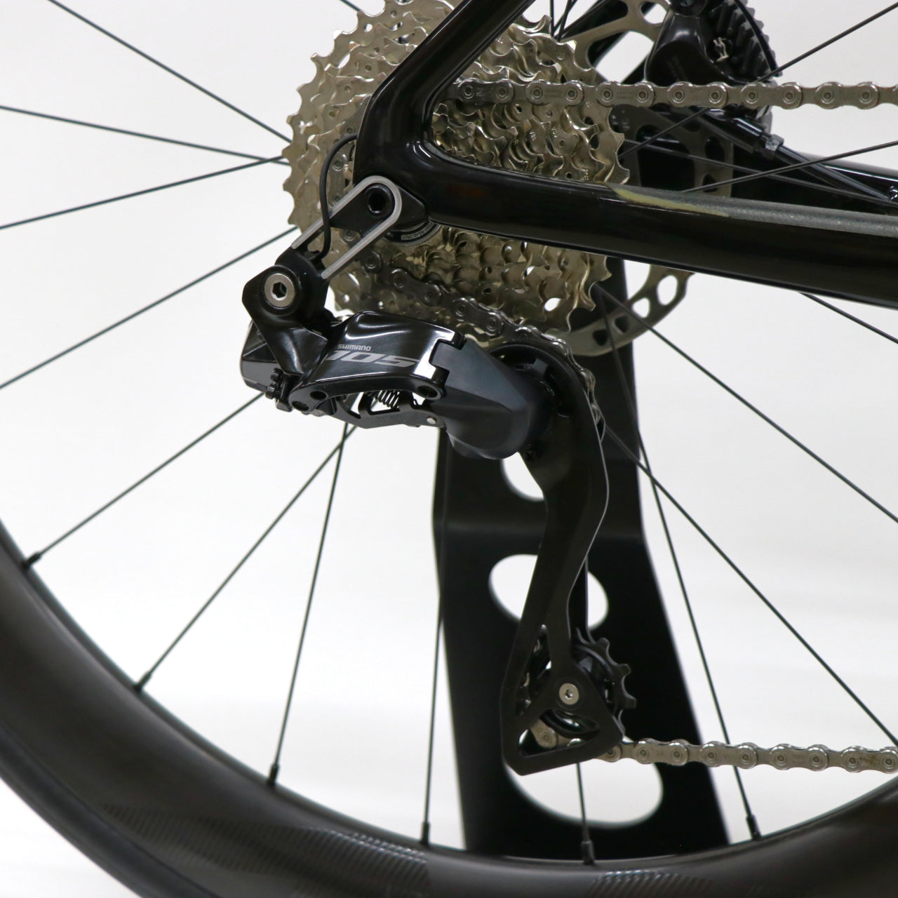 これにより外観の美しさに加え、ケーブル損傷リスクの低減やメンテナンス性の向上が図られています。 - コンポーネントには新型SHIMANO 105 Di2(12speed セミワイヤレス)を採用し、軽快で確実な変速を実現。リアエンドは最新規格のダイレクトマウントディレーラーハンガーを採用し、剛性と変速精度を高めています。