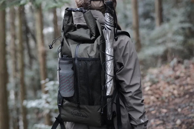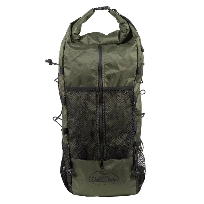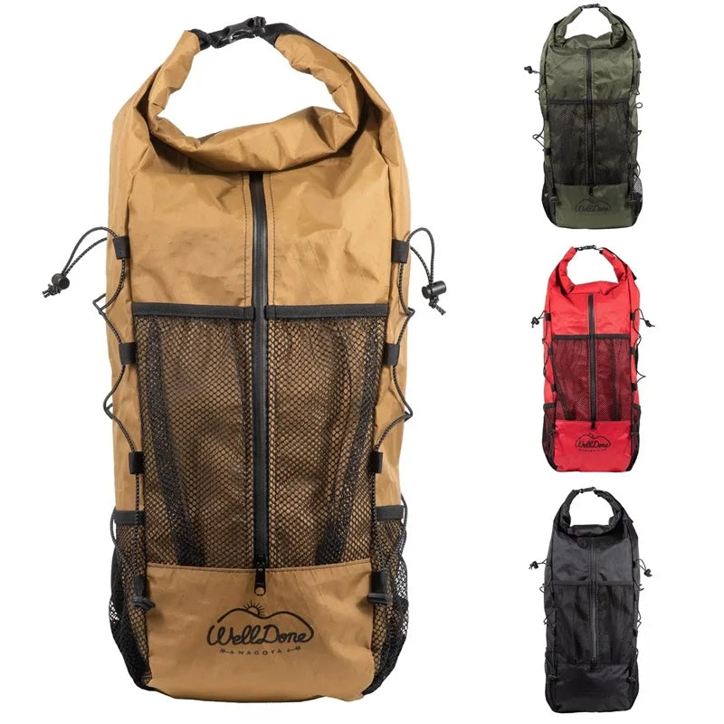 WELLDONE Chips Bag 30Lは2WAYロールトップと豊富なポケット、X-PAC採用の日本製。
