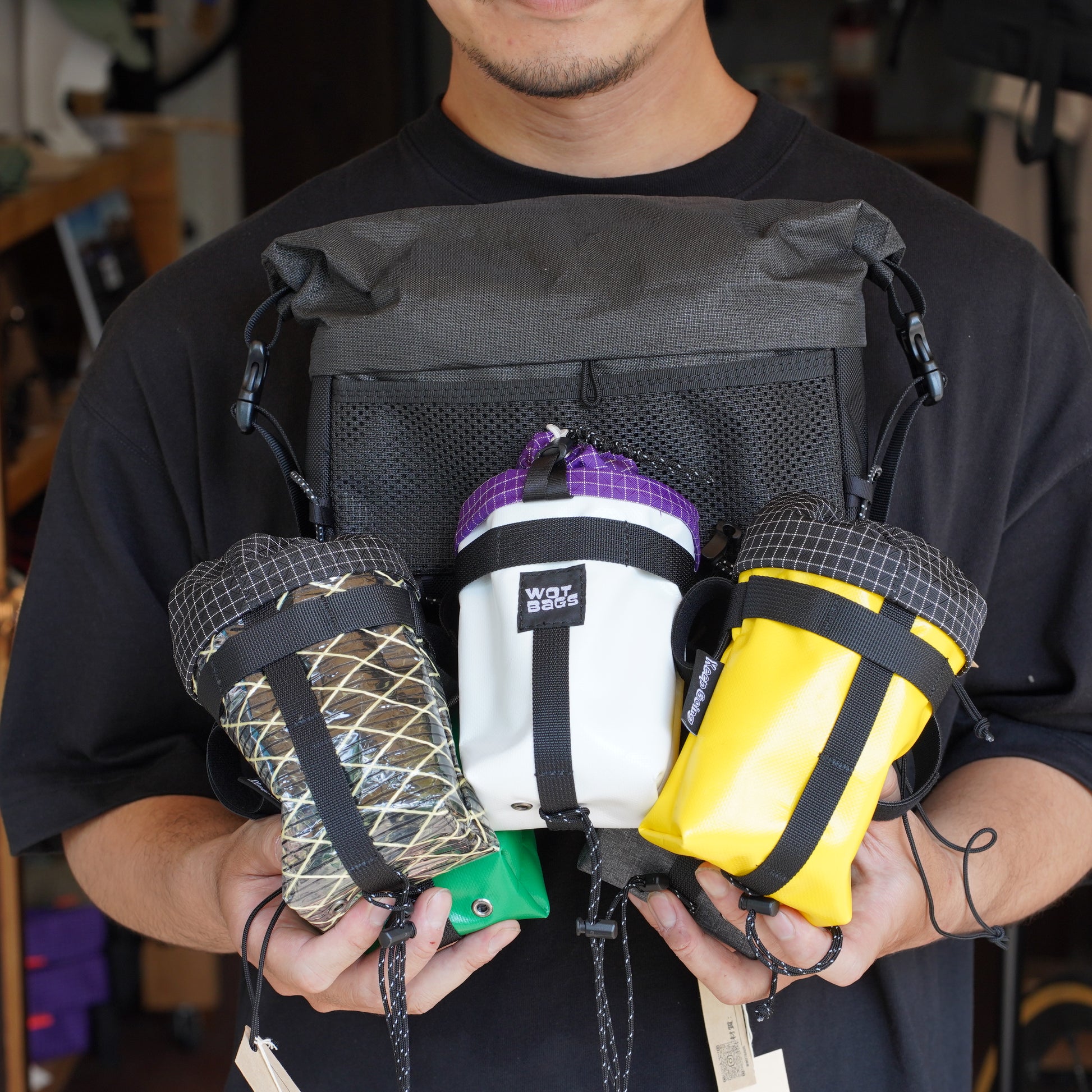 和歌山の工房で手作りされる、WOT BAGSのコンパクトなステムバッグ。小ぶりな設計で使いやすく、日常にも旅にも活躍します。