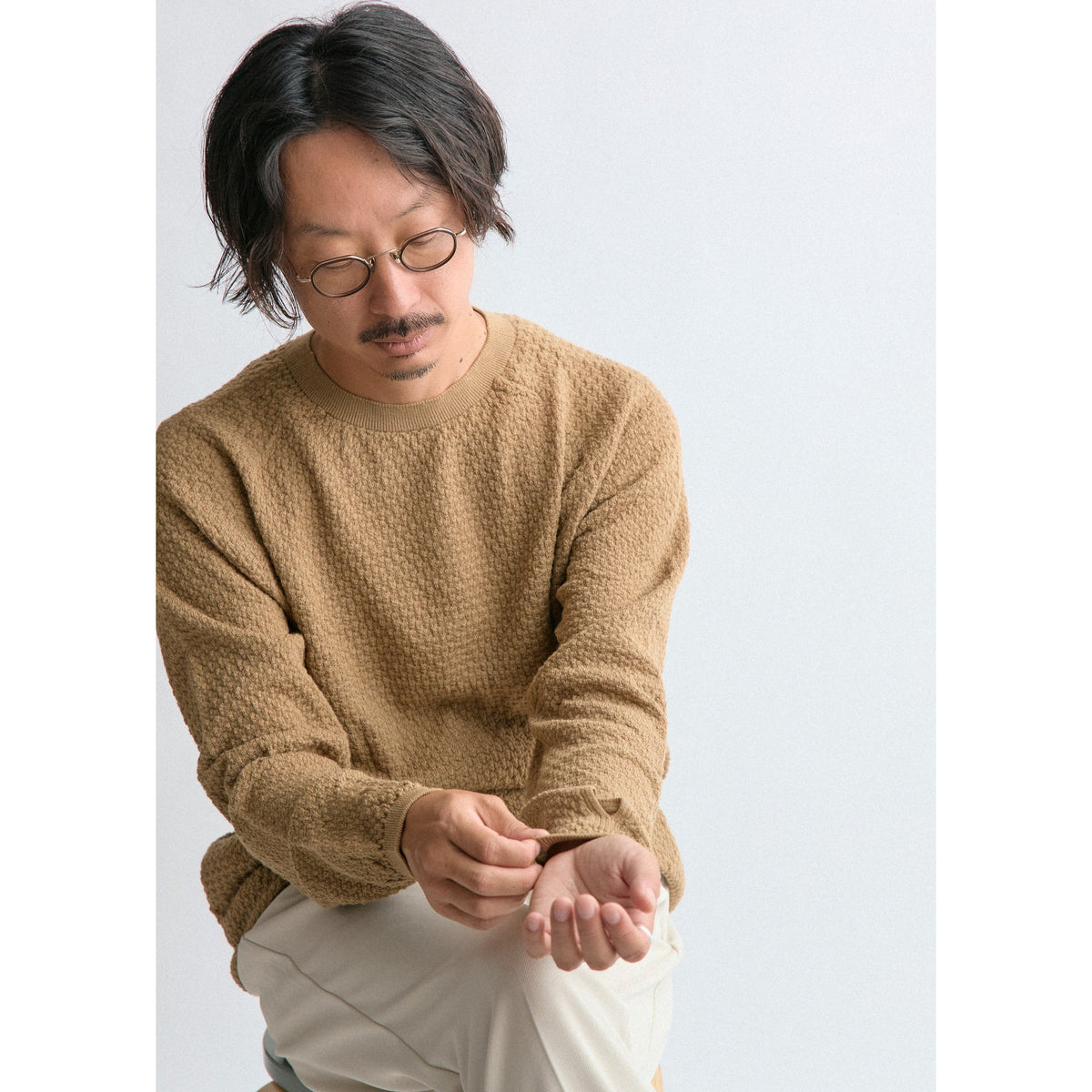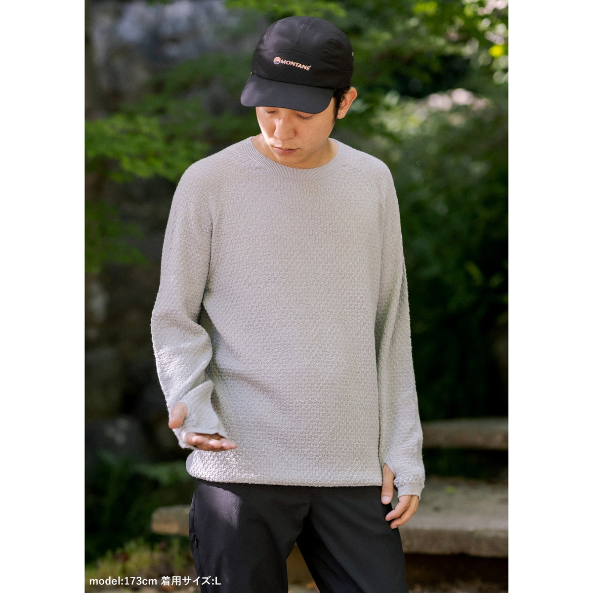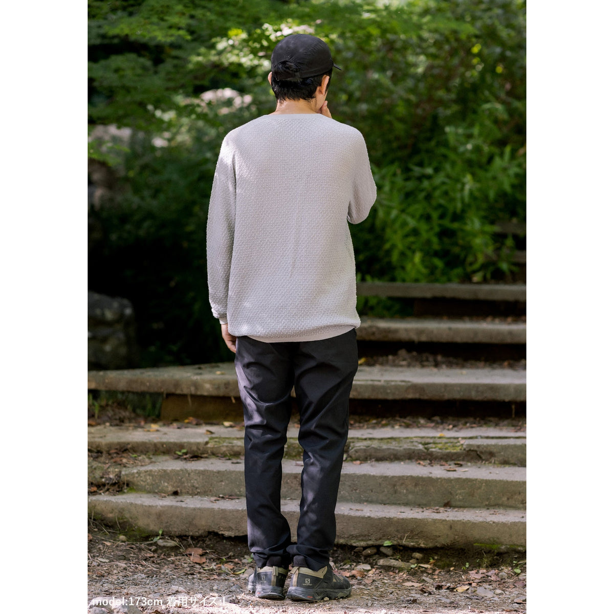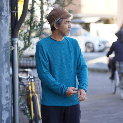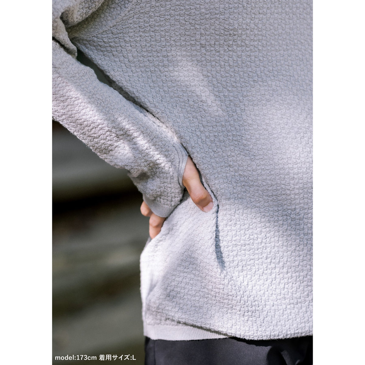3Dメッシュのような凹凸のあるニット地が汗抜けと空気の層による保温力を両立してくれる優れモノ。