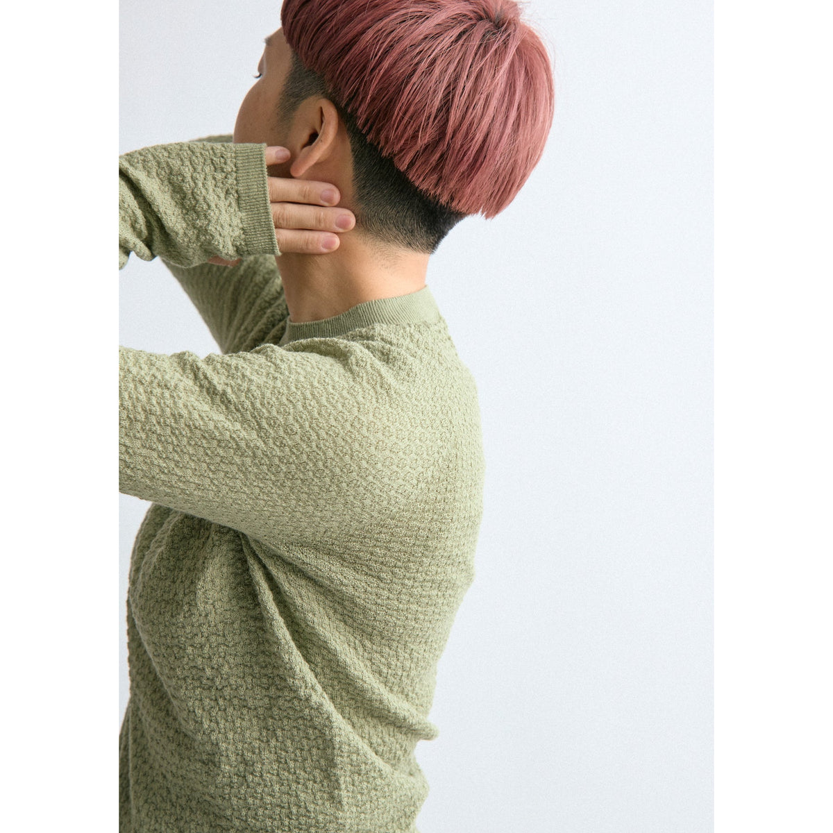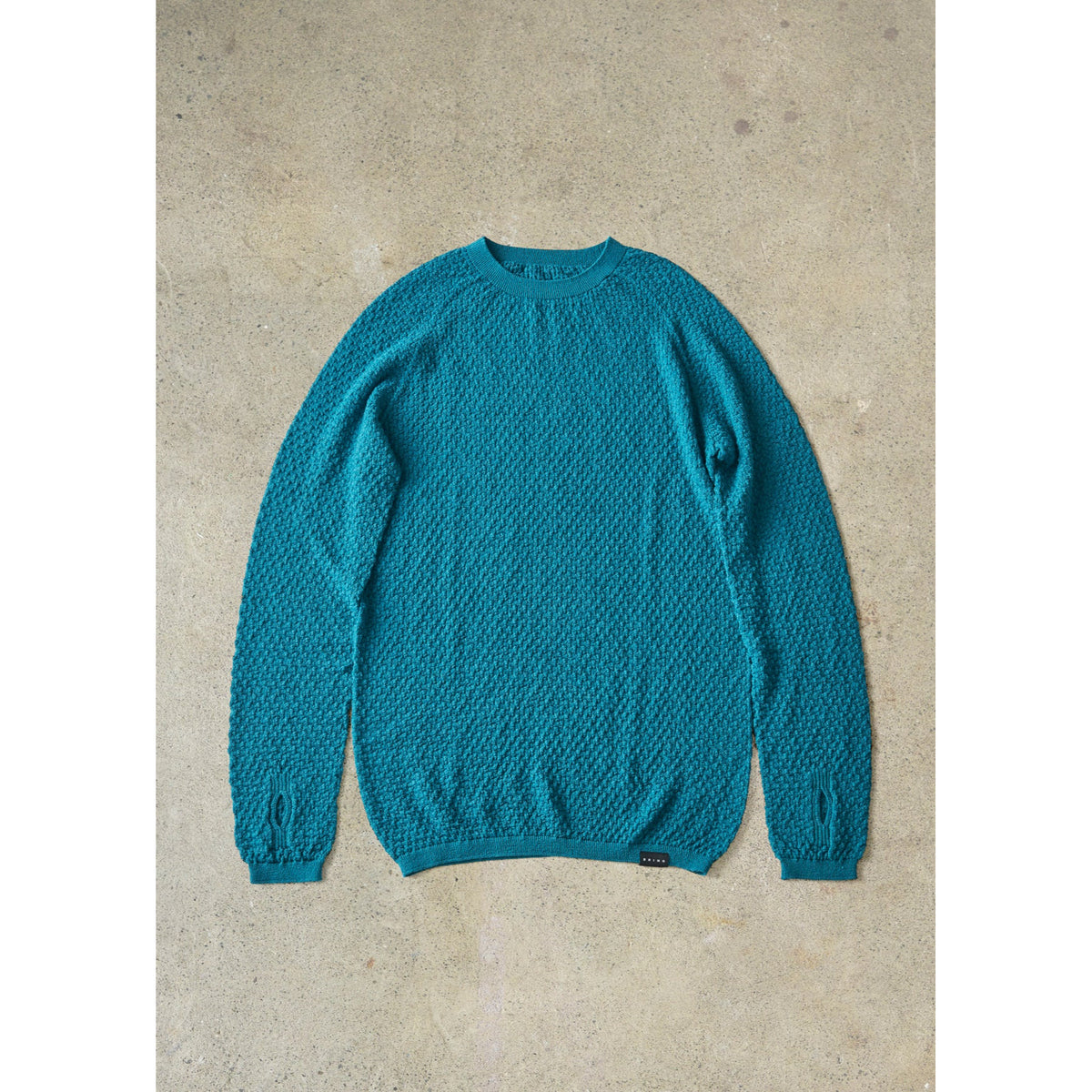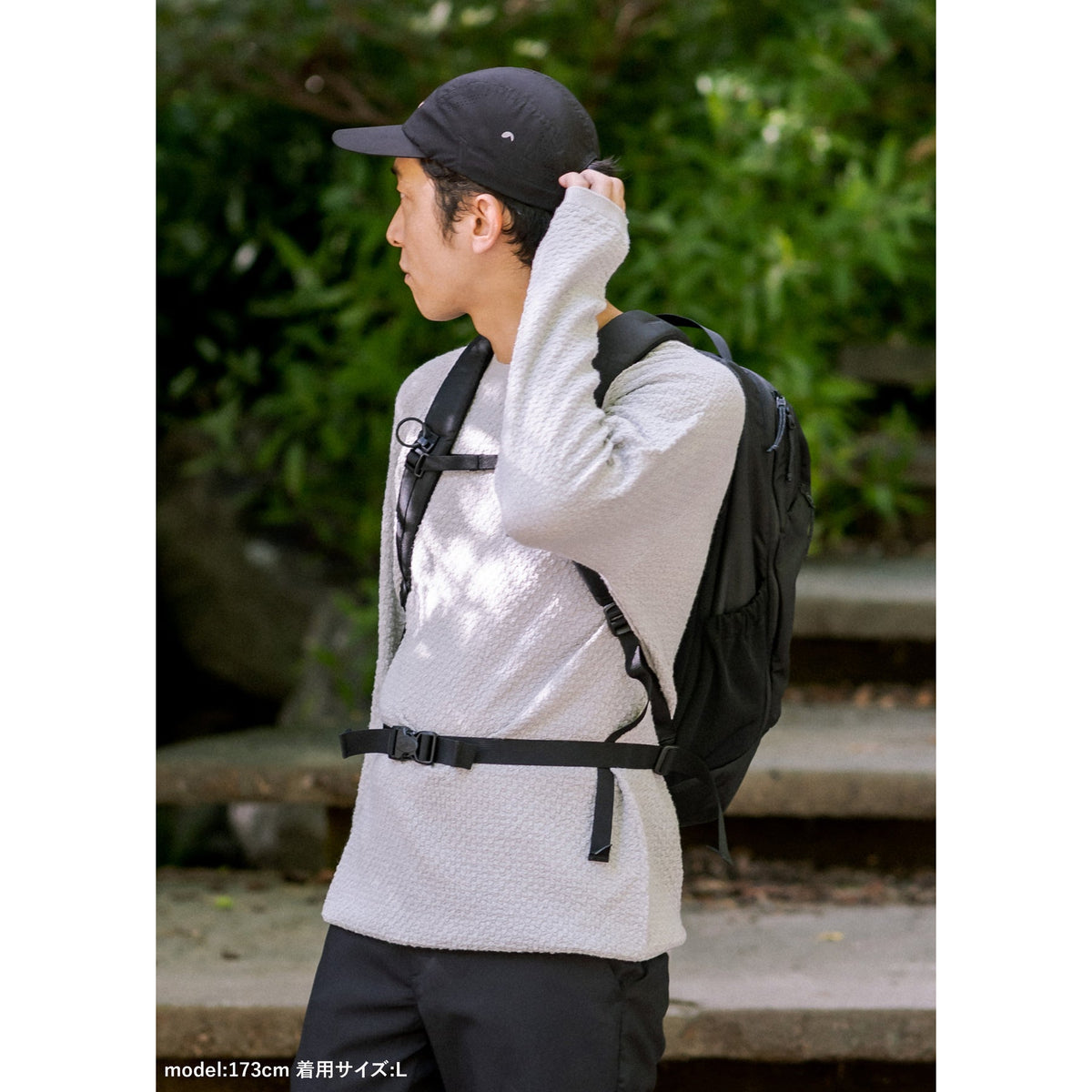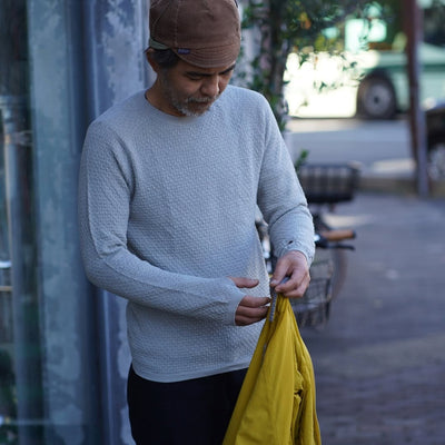 3Dメッシュのような凹凸のあるニット地が汗抜けと空気の層による保温力を両立してくれる優れモノ。