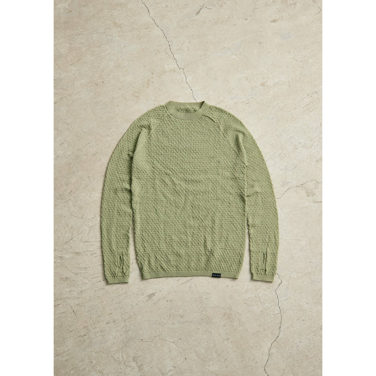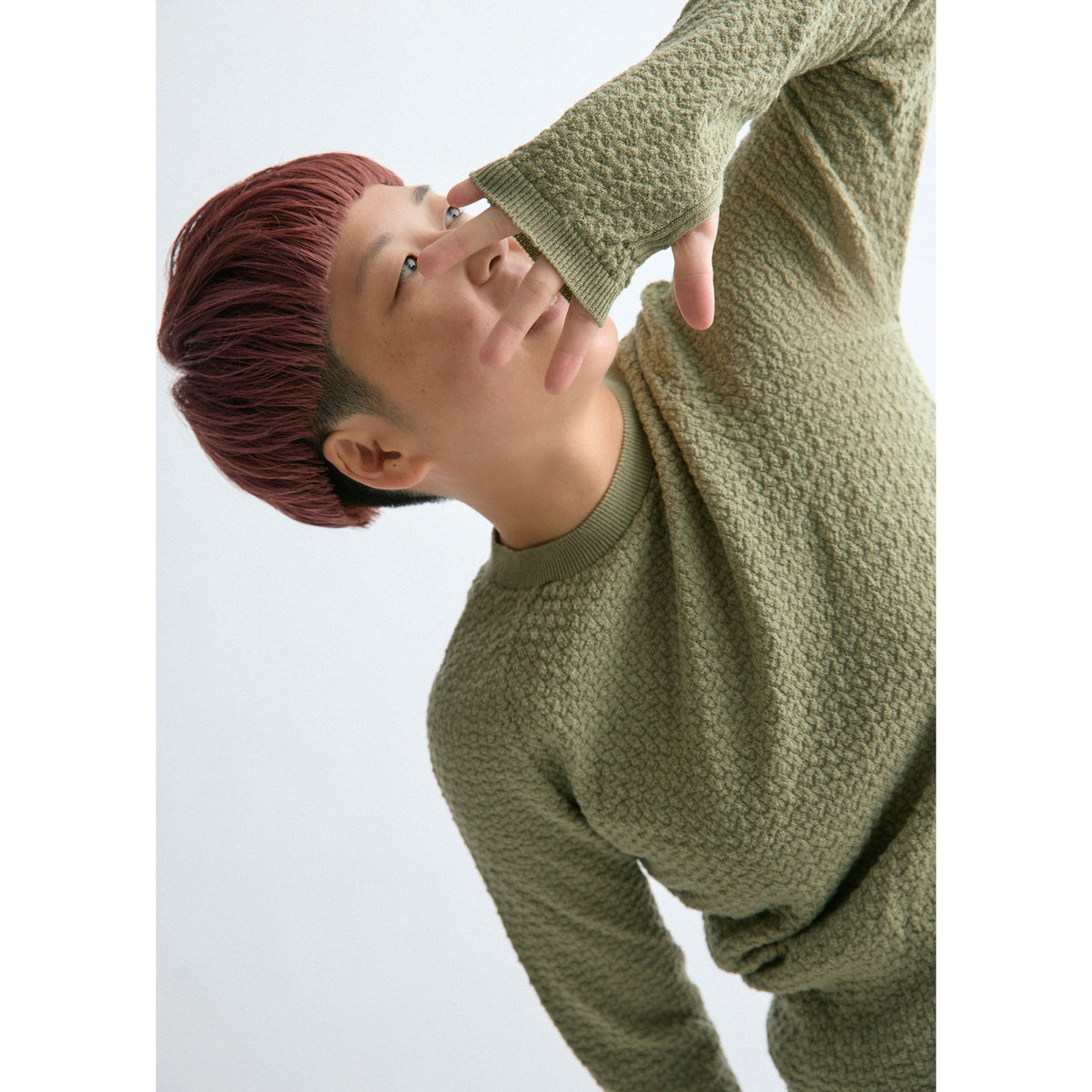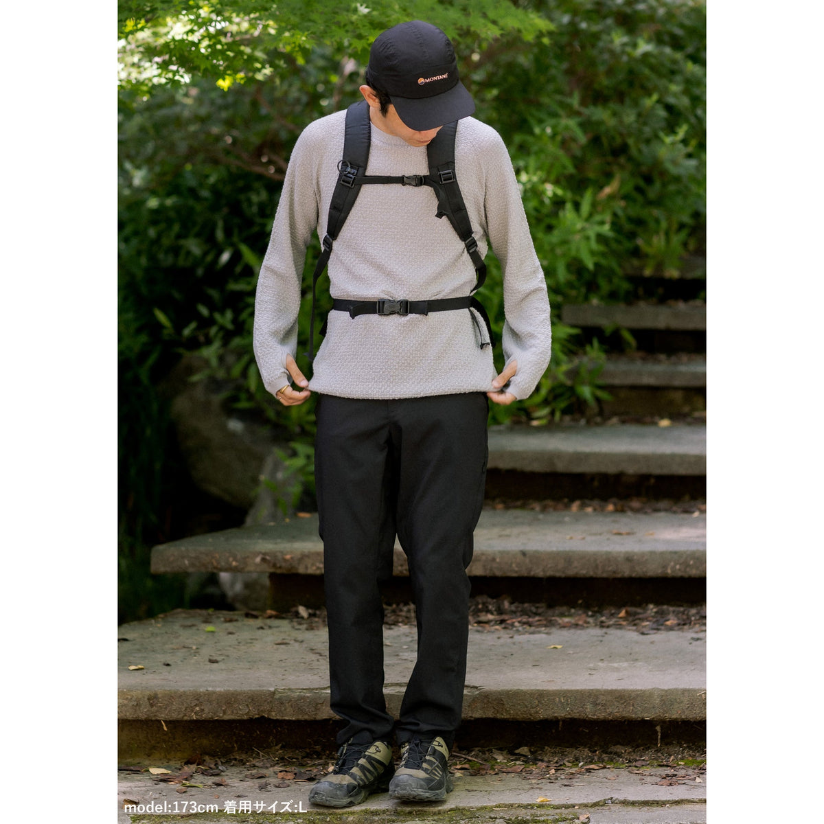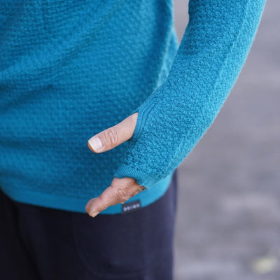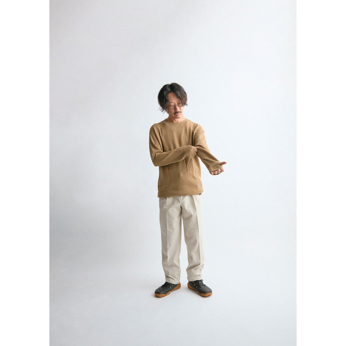 3Dメッシュのような凹凸のあるニット地が汗抜けと空気の層による保温力を両立してくれる優れモノ。